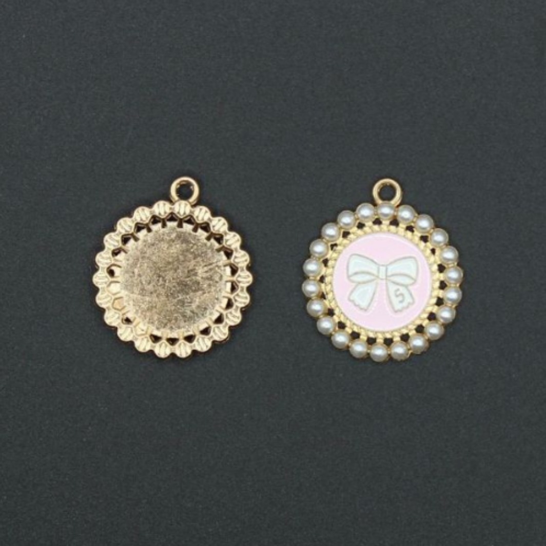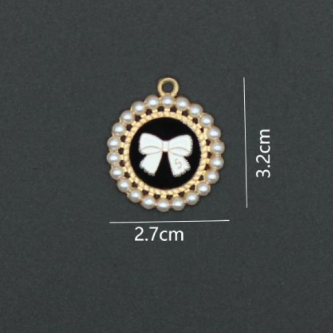 ヘアアクセサリー材料ヘアアクセサリーdiy合金アクセサリー真珠ちょう結びラウンドペンダントdiyドリップオイル合金材料ストレートバッチ