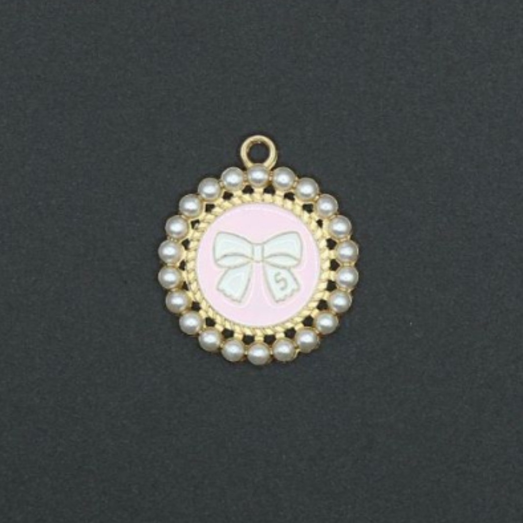今年のヘアアクセサリーアクセサリーラウンドパールリボン diy ジュエリーアクセサリーキーホルダー英字合金ペンダント