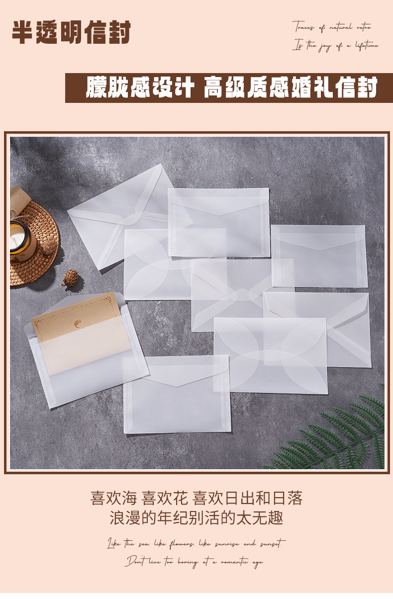 インスタ映え 透明つや消し半透明硫酸紙封筒 シンプルなヨーロピアンスタイル 文芸風 ポストカード ビジネス招待状封筒