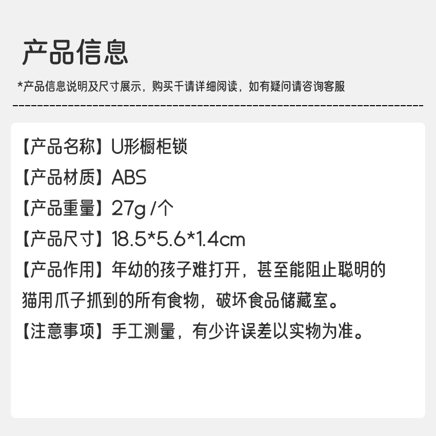 子供安全防護用品多機能u型キャビネットドアロック室内引き出しロック赤ちゃん安全ロック卸売り