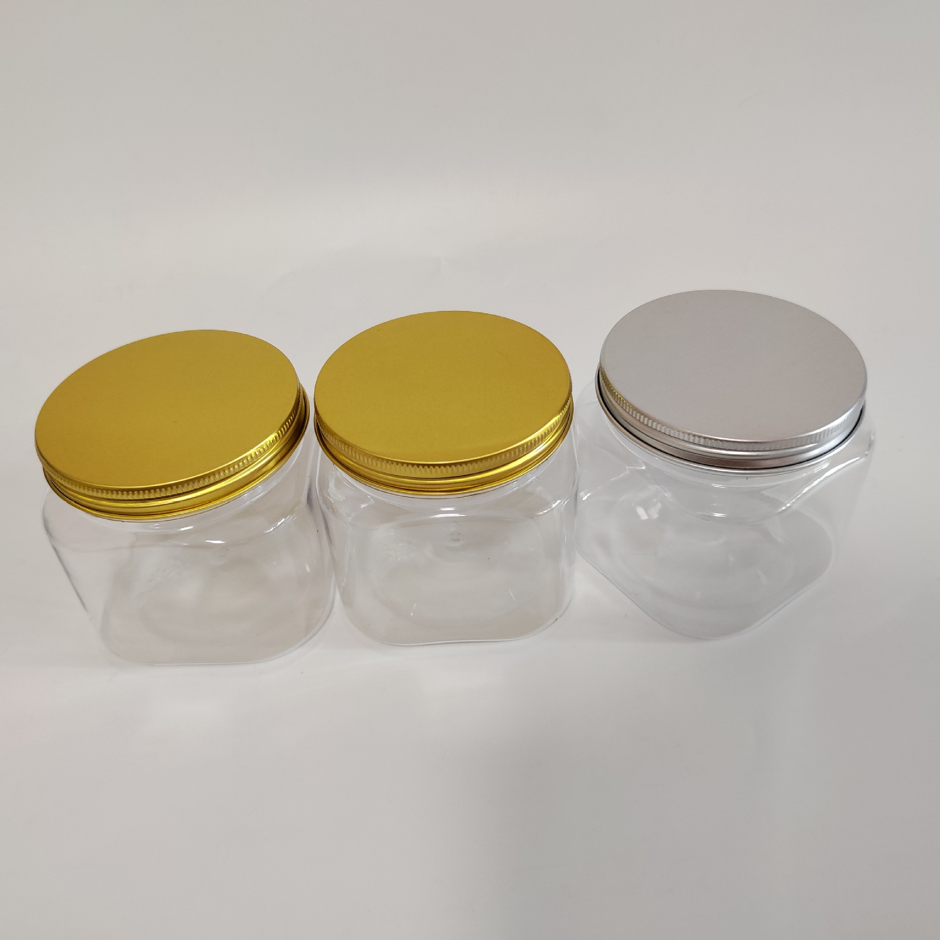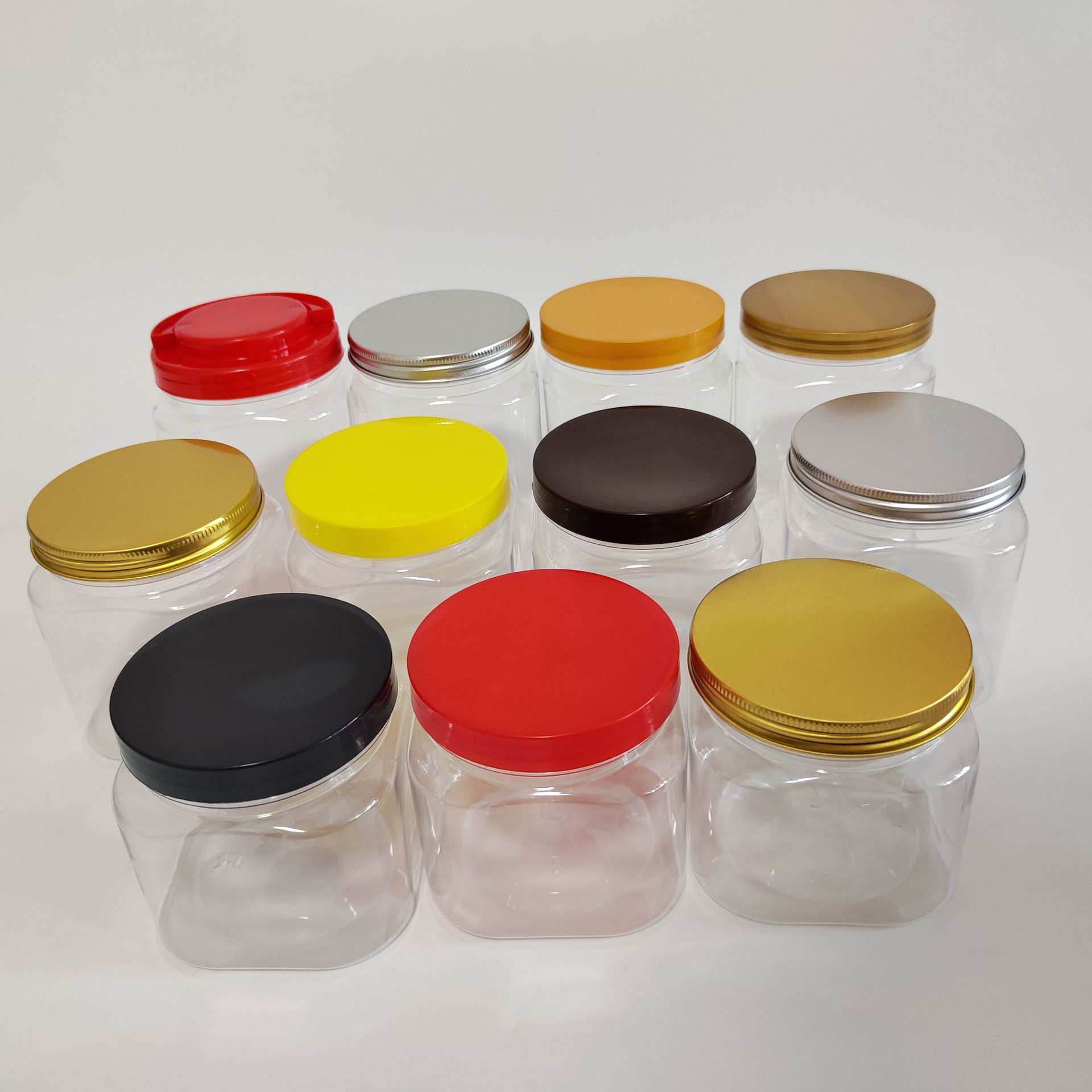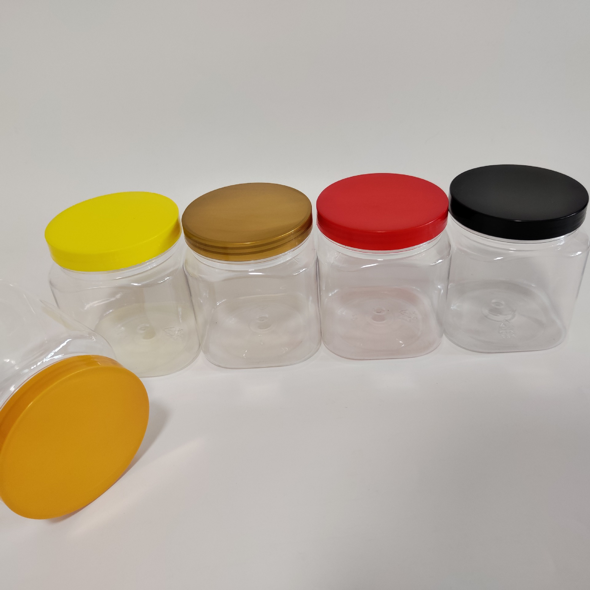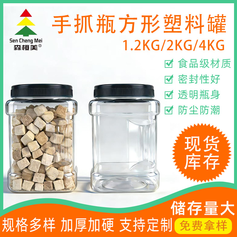 85口径方形罐子,支持定制,高度 5cm-20cm,PET材质,瓶身透亮,可搭配多种款式盖子,详情请咨询客服。
