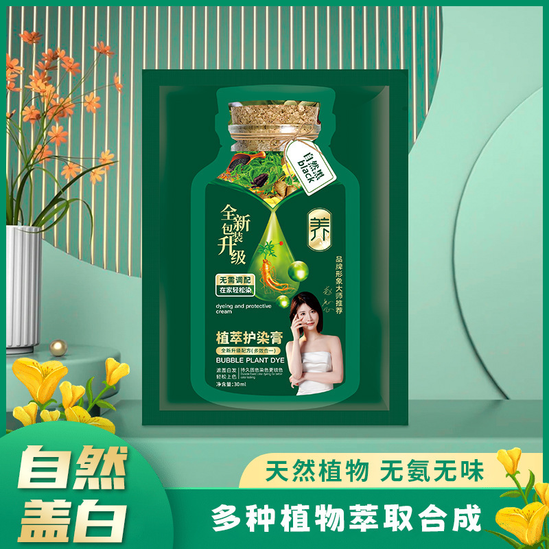 現物カラー袋入り染毛剤植物蓋白髪一黒袋入り小包装泡染毛ペースト