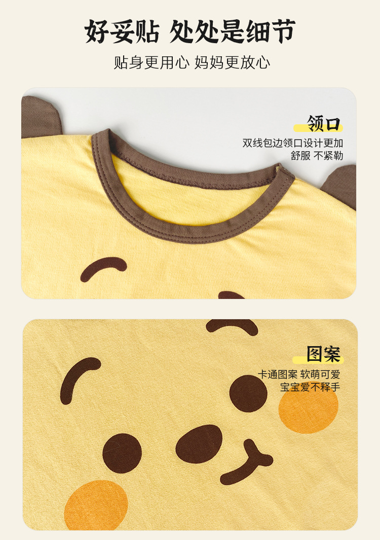 子供男女春夏通気性薄い下着空調服長袖パジャマ中童竹繊維七分袖セット
