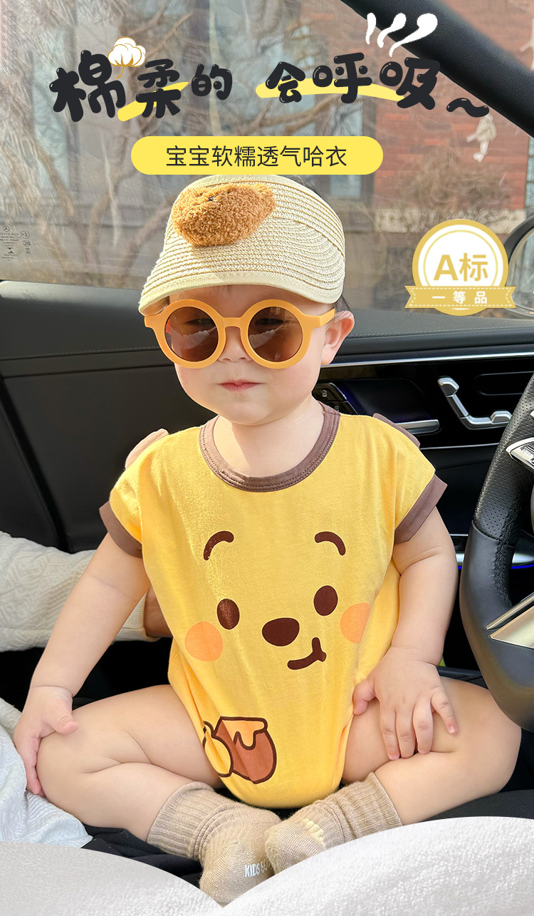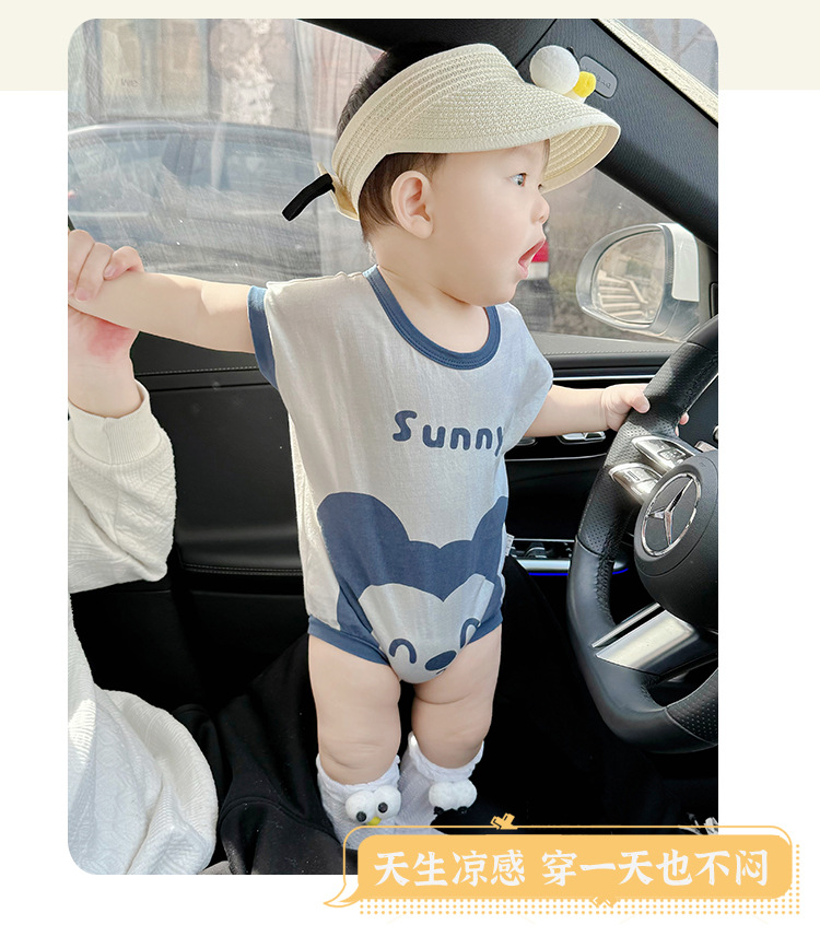 夏の薄手の片面ベスト三角の赤ちゃんのワンピースの赤ちゃんの夏服はお尻の服を着て柔らかくて通気性があります。