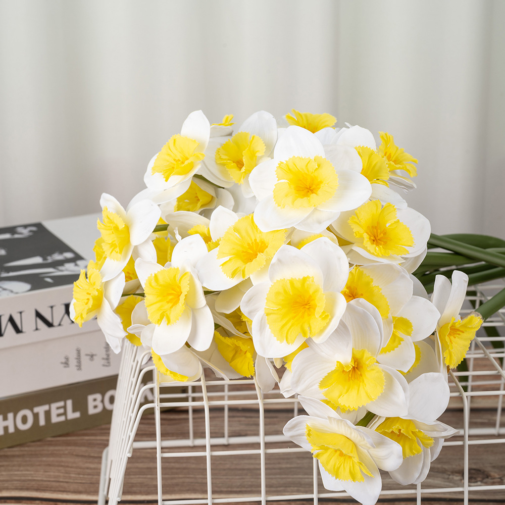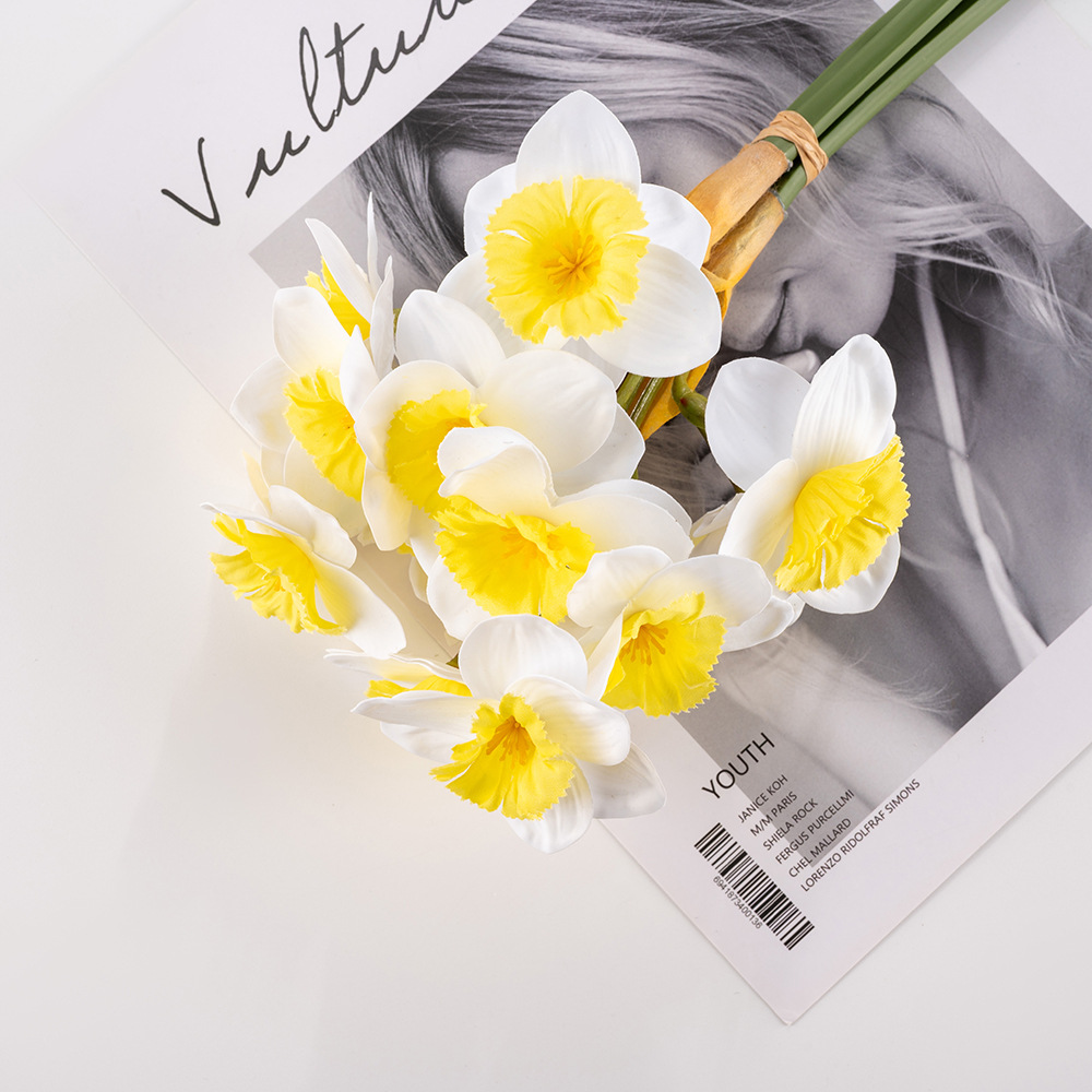 高品質の手触りの柔らかいゴムは水仙の花の家庭の柔らかい服をシミュレーションして多頭のシミュレーションの花の洋水仙の花束を飾ります。