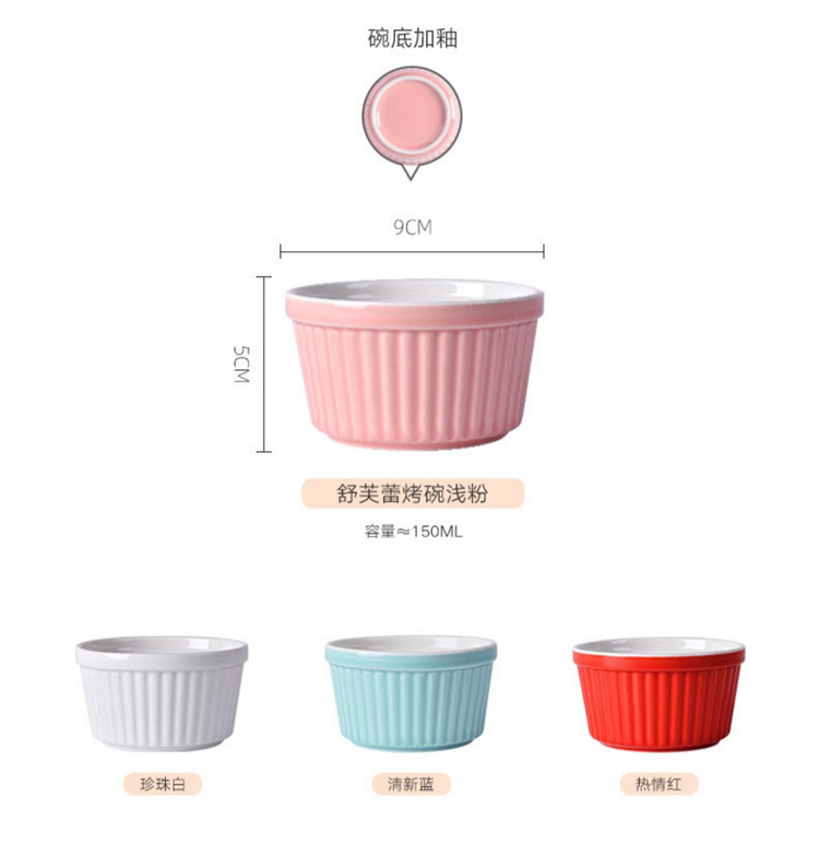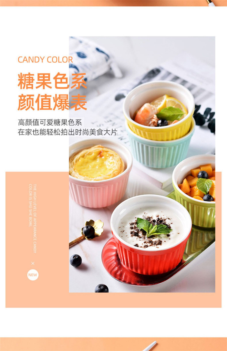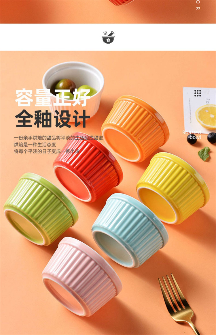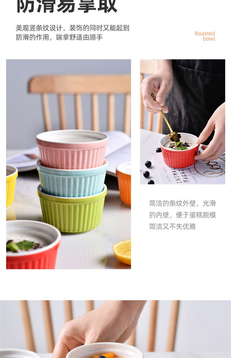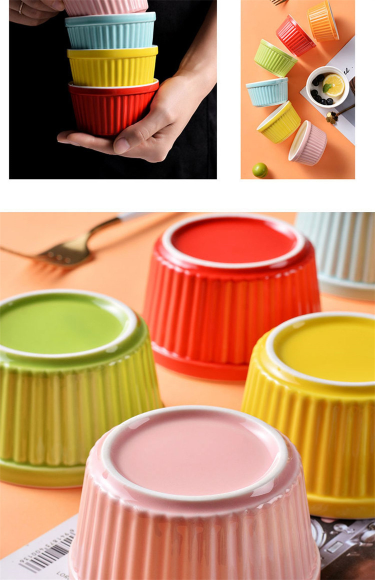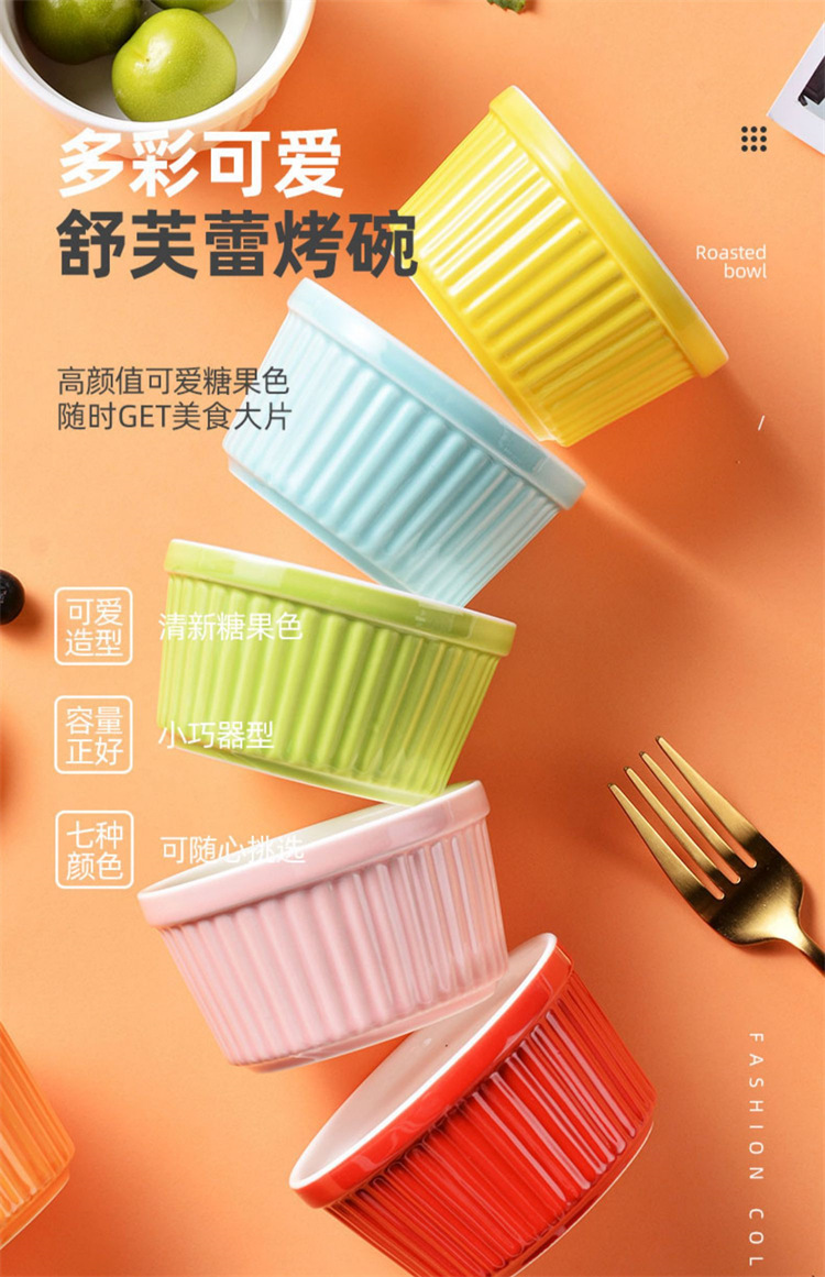 輸出陶磁器舒芙蕾焼き碗色釉ストライプ杯柳条杯甜品布丁碗蒸し卵碗家庭用オーブン碗