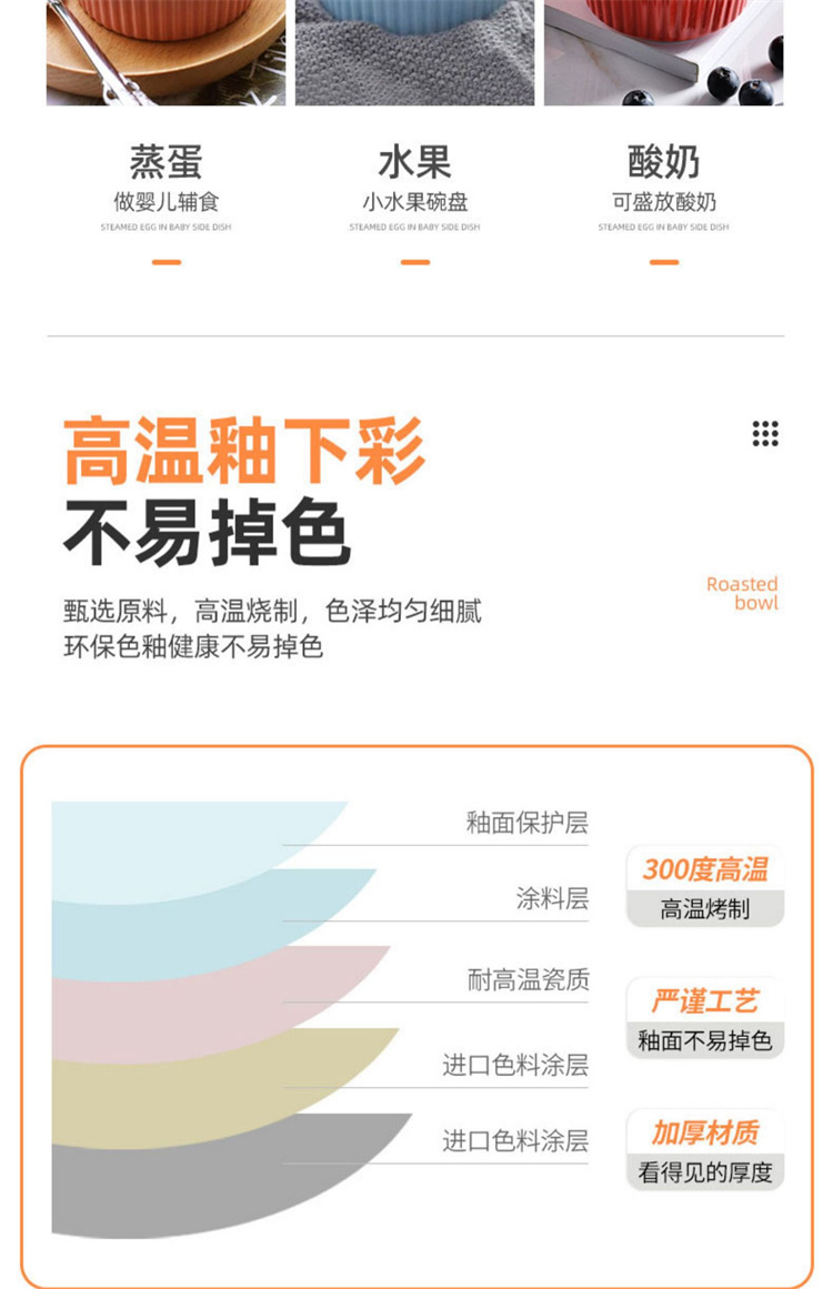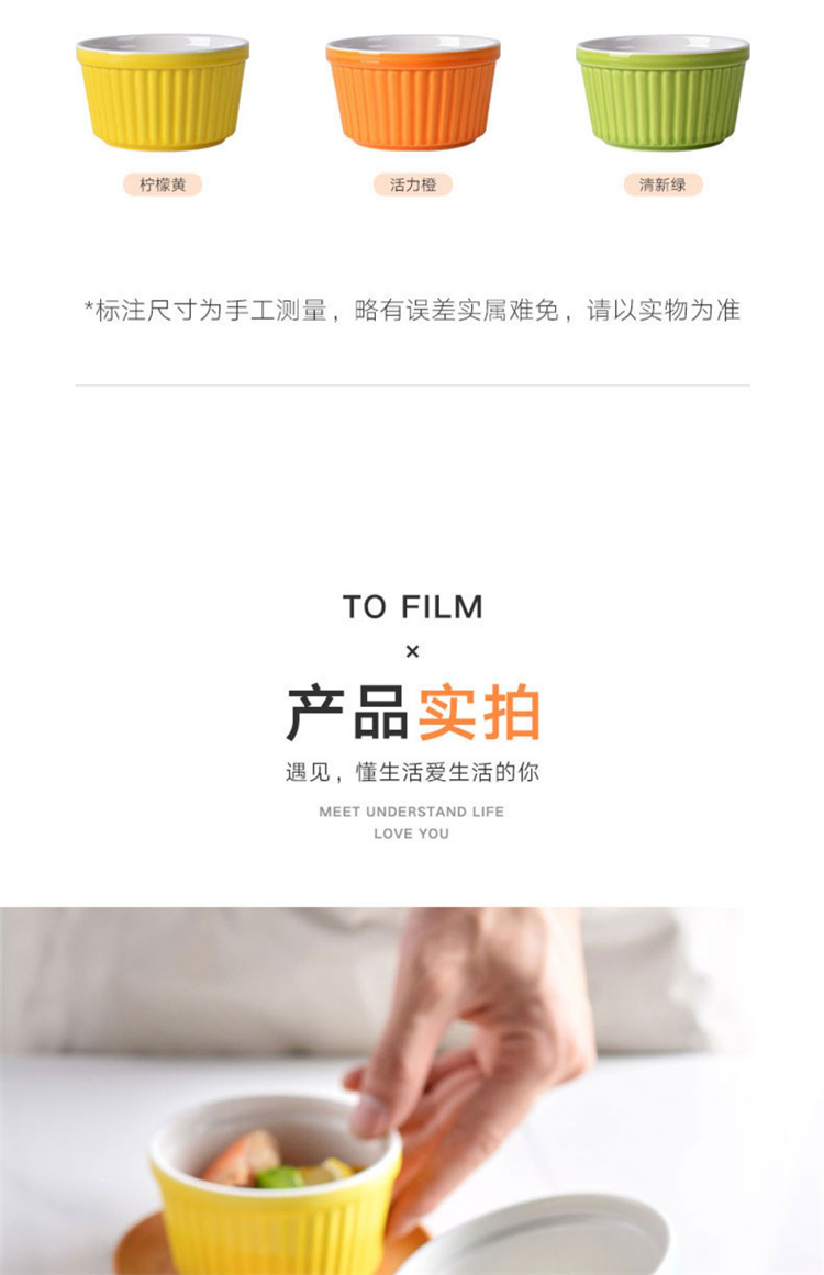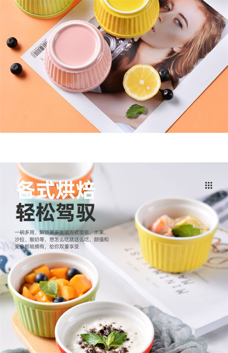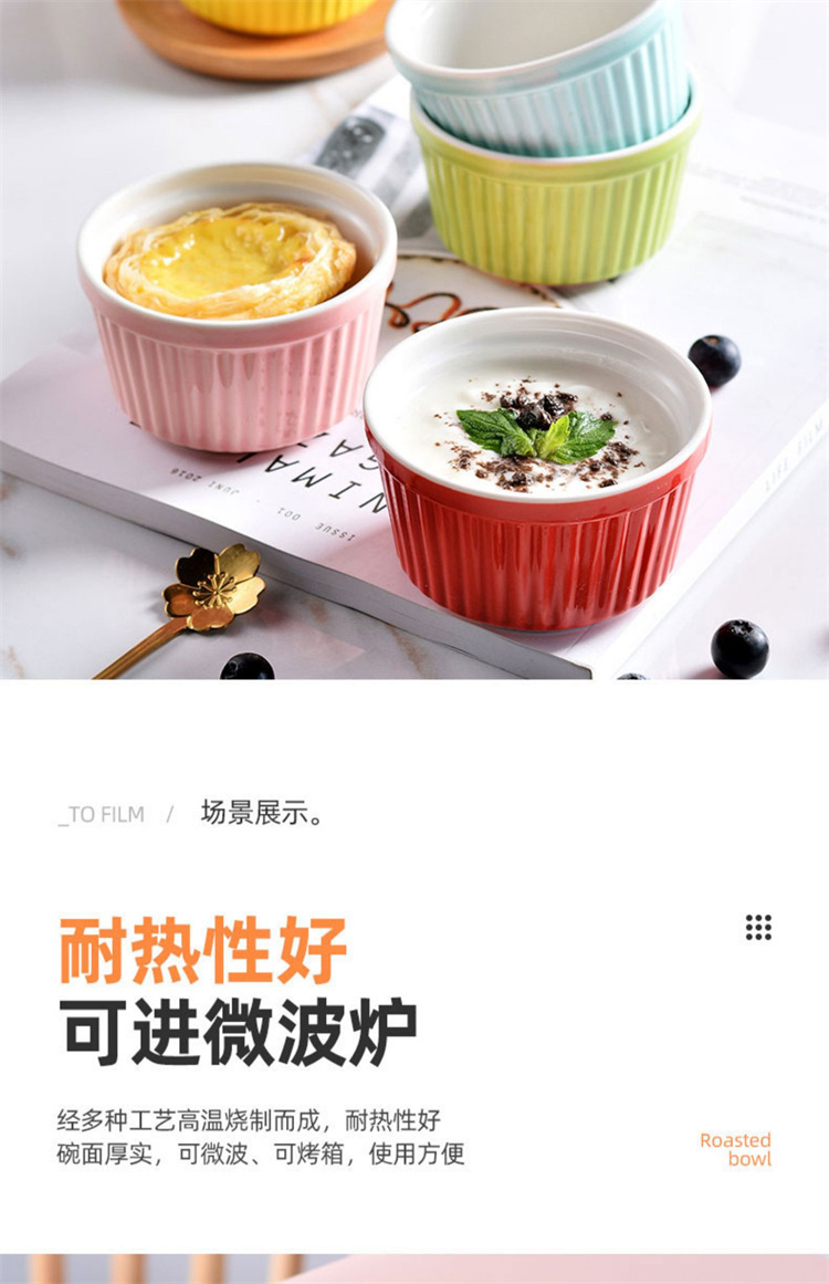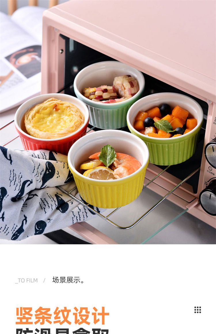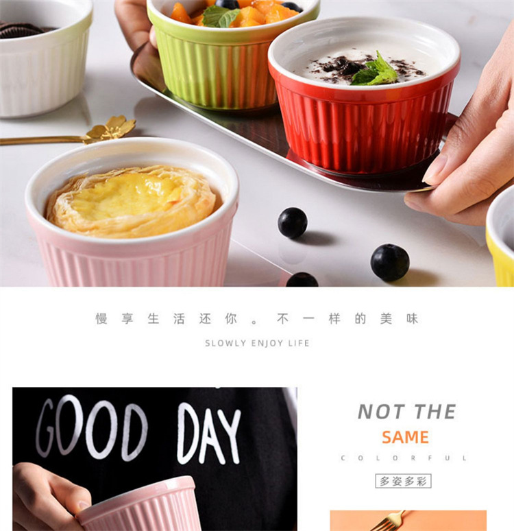 輸出陶磁器舒芙蕾焼き碗色釉ストライプ杯柳条杯甜品布丁碗蒸し卵碗家庭用オーブン碗