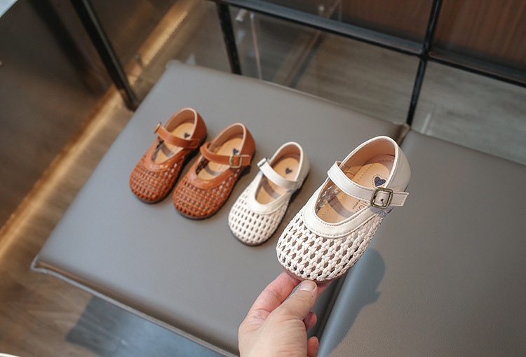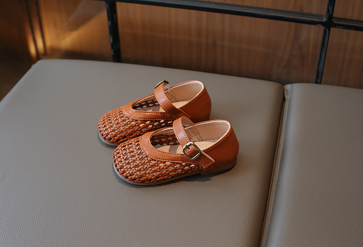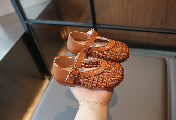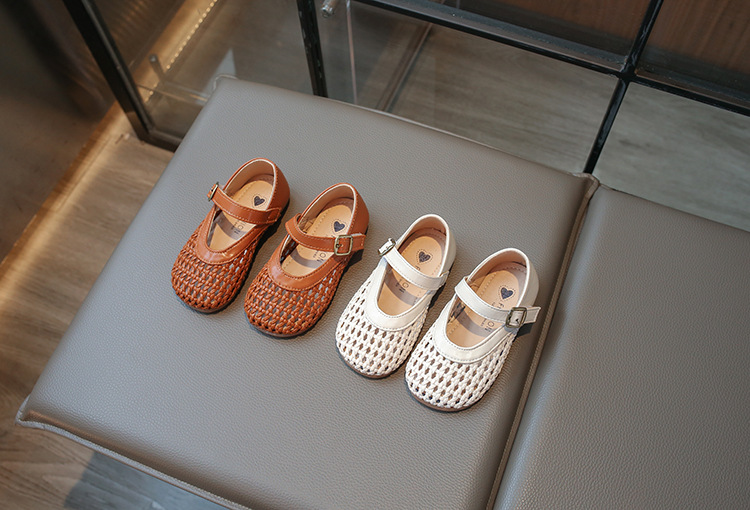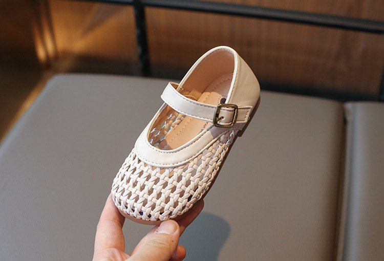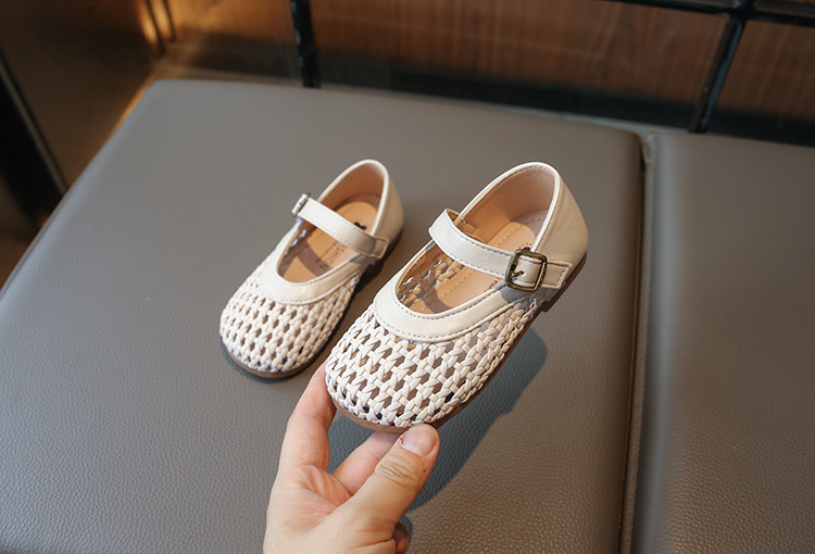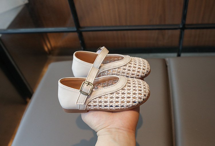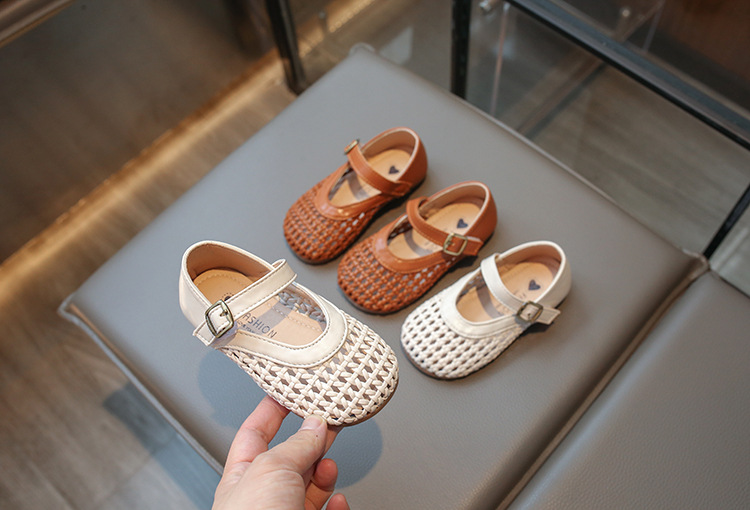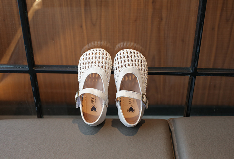 韓国版の女の子の王女の靴の夏の新型の子供の透かし彫りの編みのサンダルの浅い口の女性の赤ちゃんの乳の靴の豆の靴