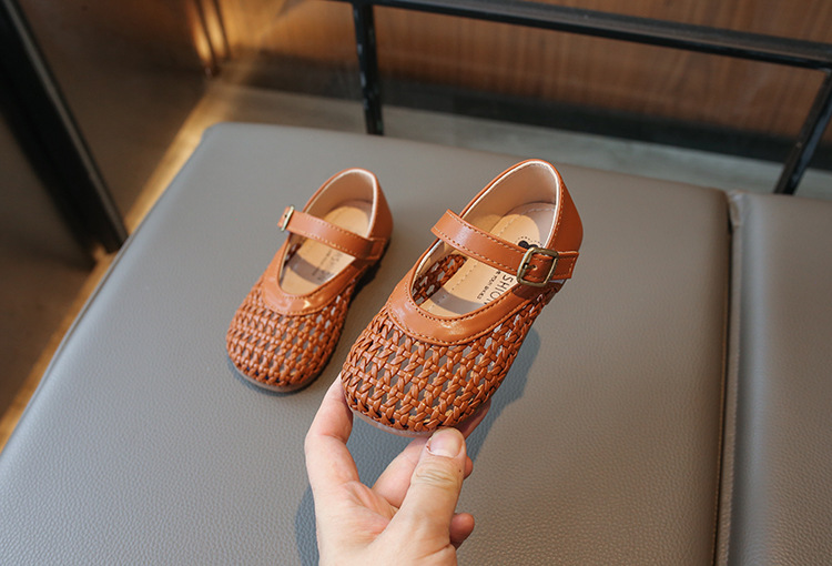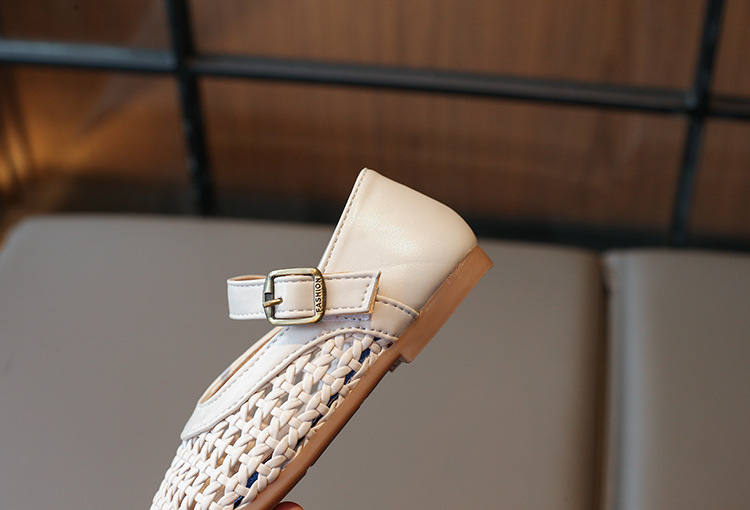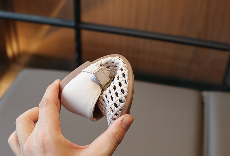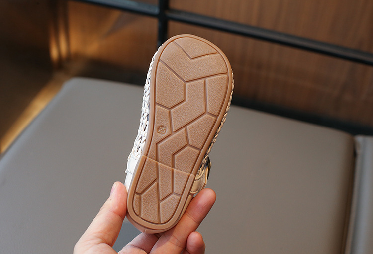 女の子の包頭編みサンダル2025夏の新型子供ファッション透かし彫りプリンセスサンダルソフト底ビーチサンダル