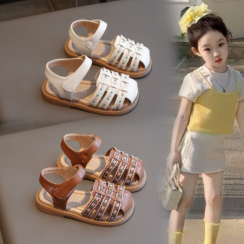 女の子ローマサンダル夏 2025 新しい子供のプリンセスシューズ包頭ソフトソール女の子の靴人気のビーチシューズ