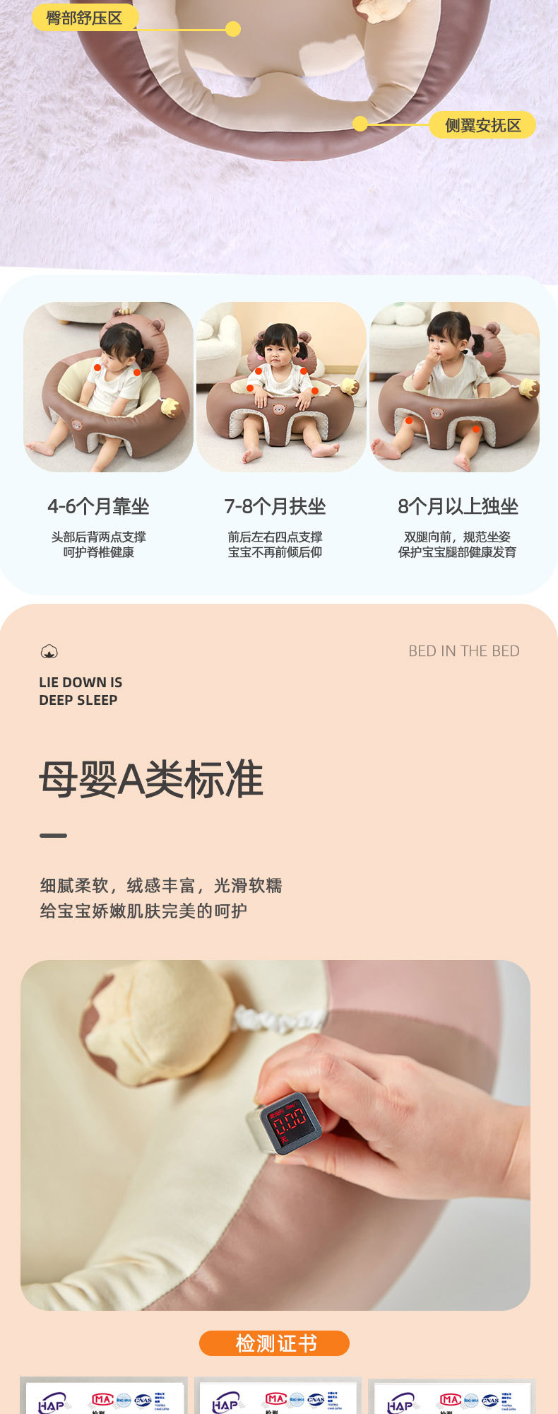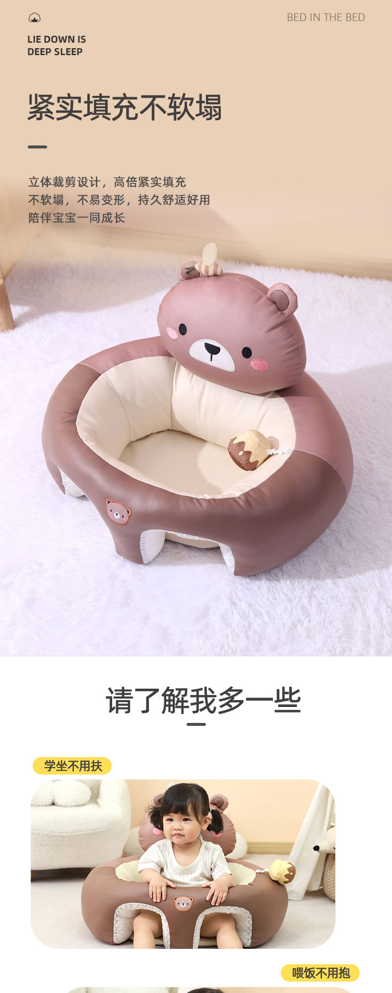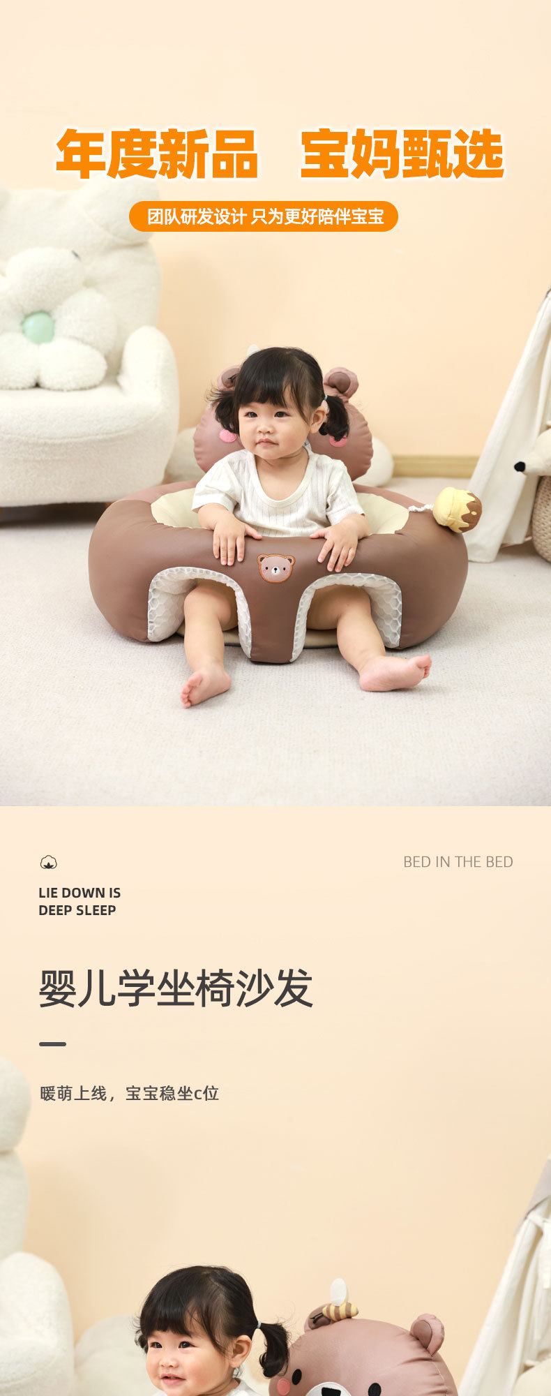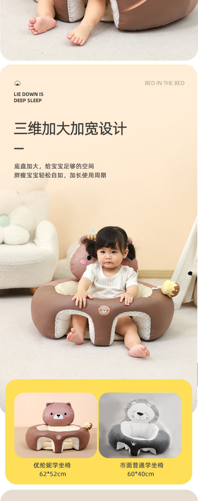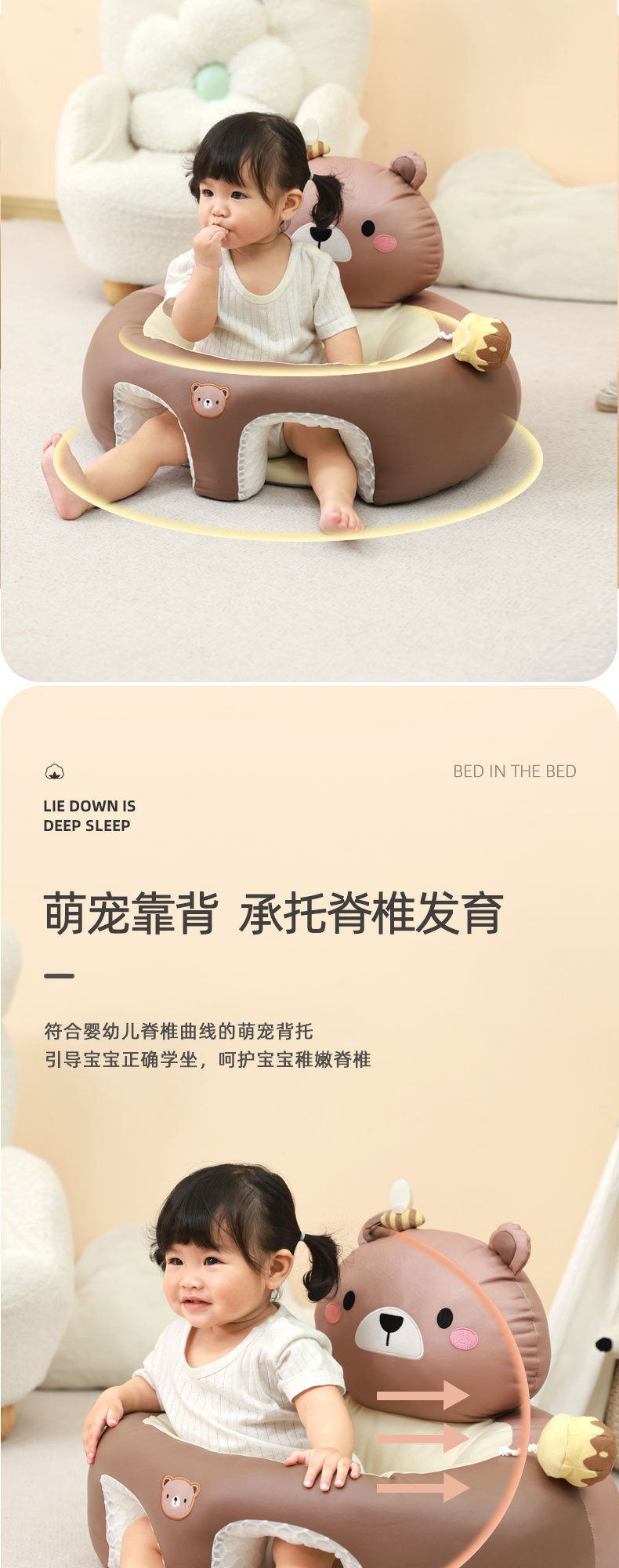 婴儿学坐椅宝宝坐立练习学坐神器不伤脊柱防摔训练座椅沙发通用