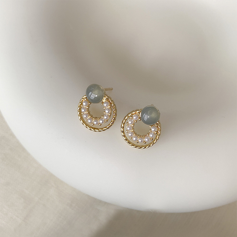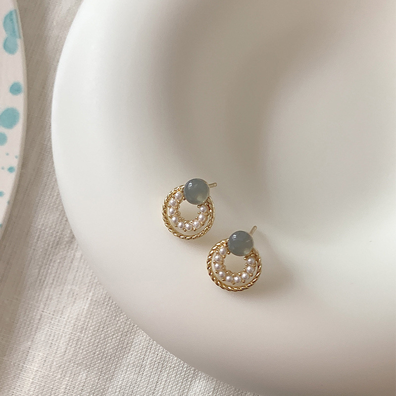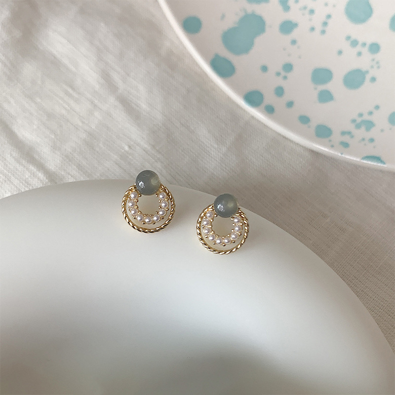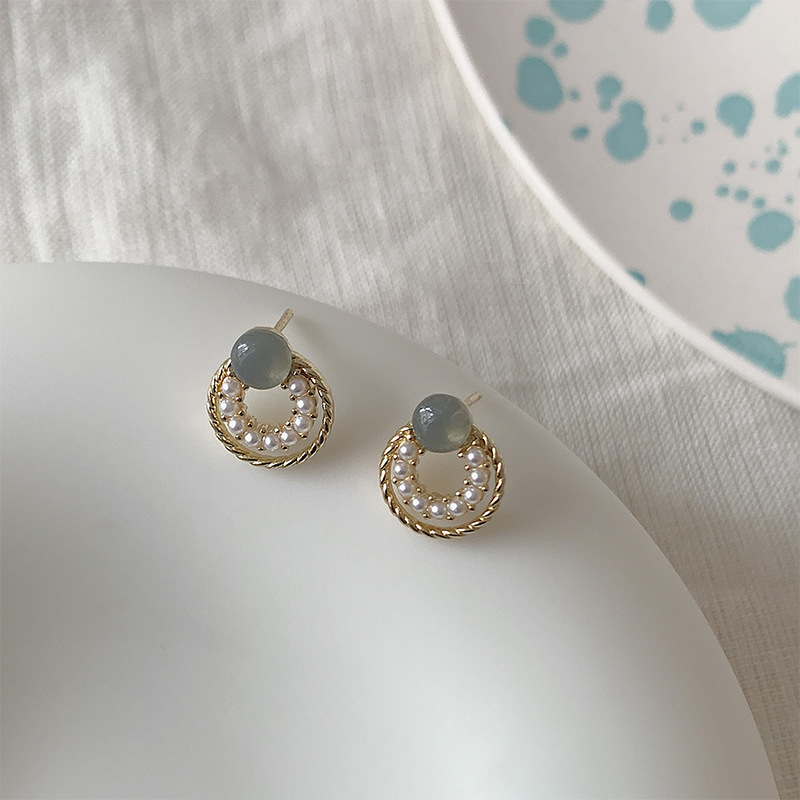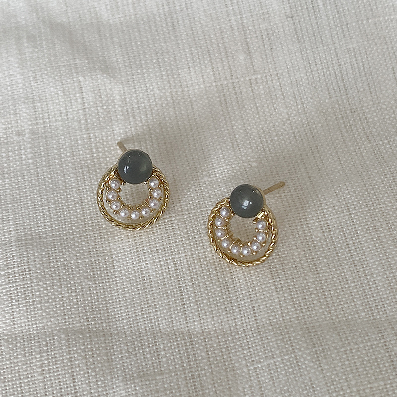 フランスの優しさ円形の幾何学の百組の真珠のイヤリングの女性のシンプルな大衆の気質のピアスの銀の針の卸売り