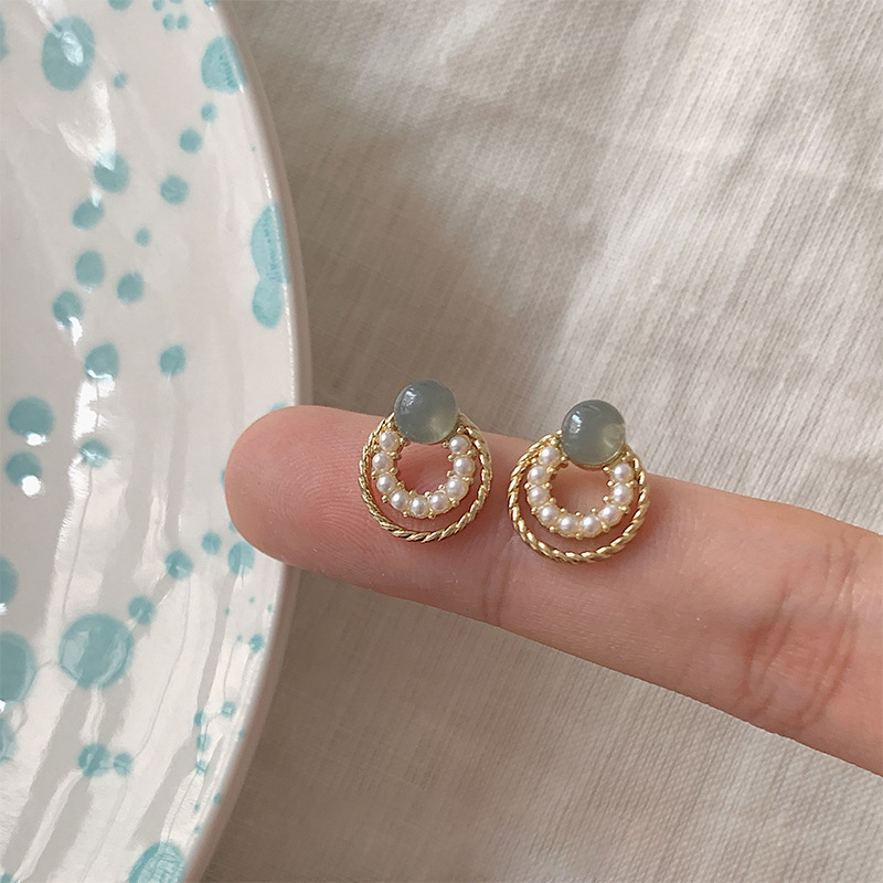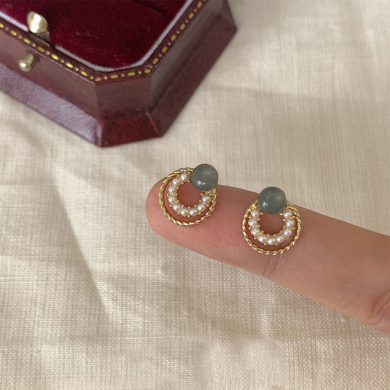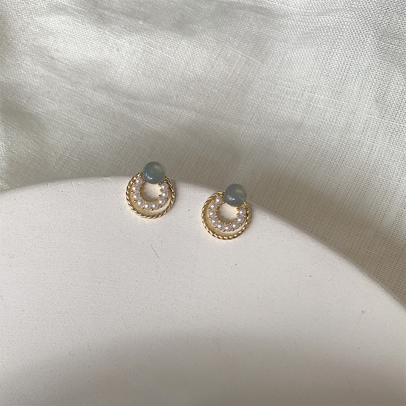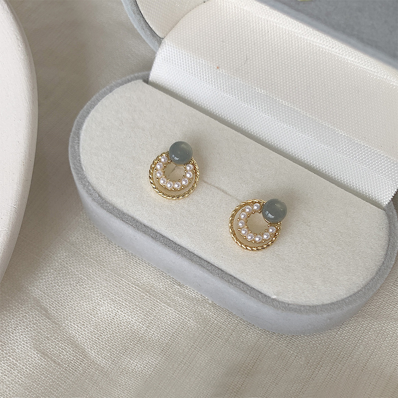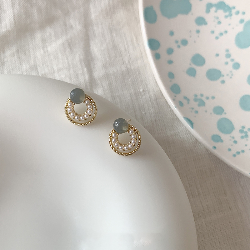 フランスの優しさ円形の幾何学の百組の真珠のイヤリングの女性のシンプルな大衆の気質のピアスの銀の針の卸売り
