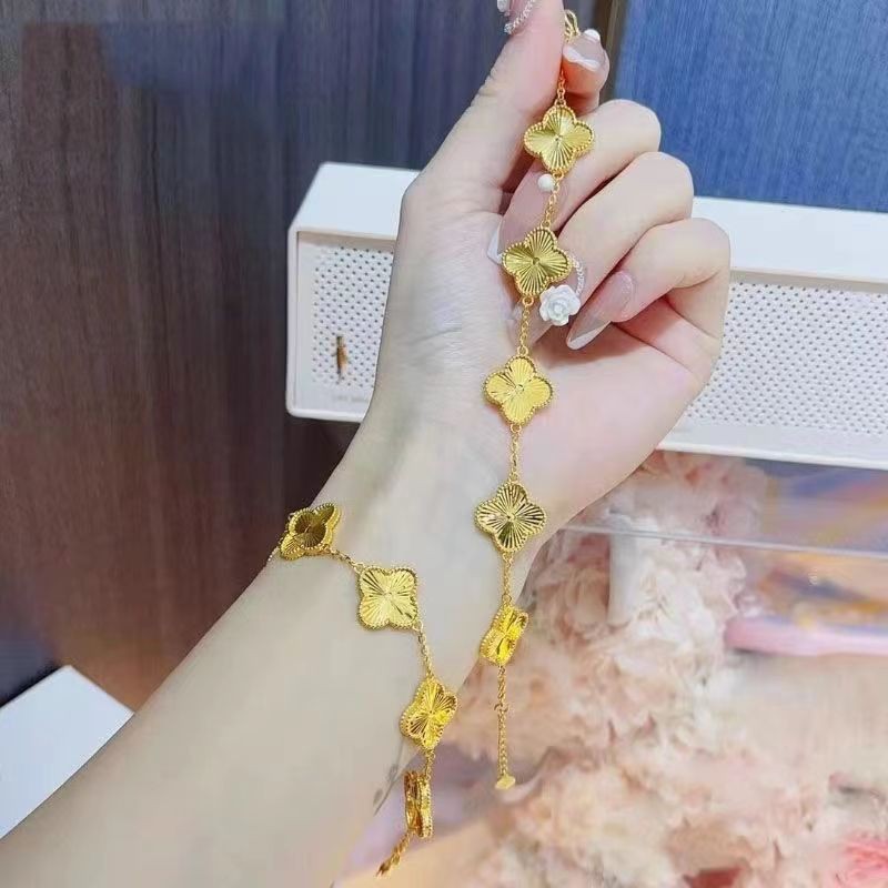 ベトナム沙金メッキ真金色四葉草五花ブレスレット気質百合清新で甘い工場供給卸売り