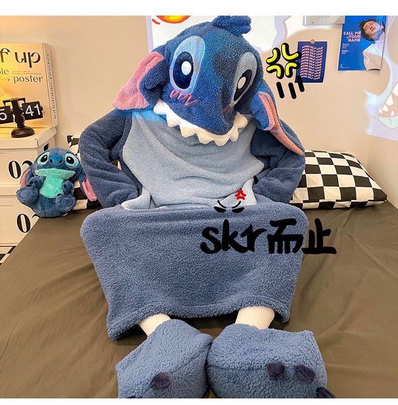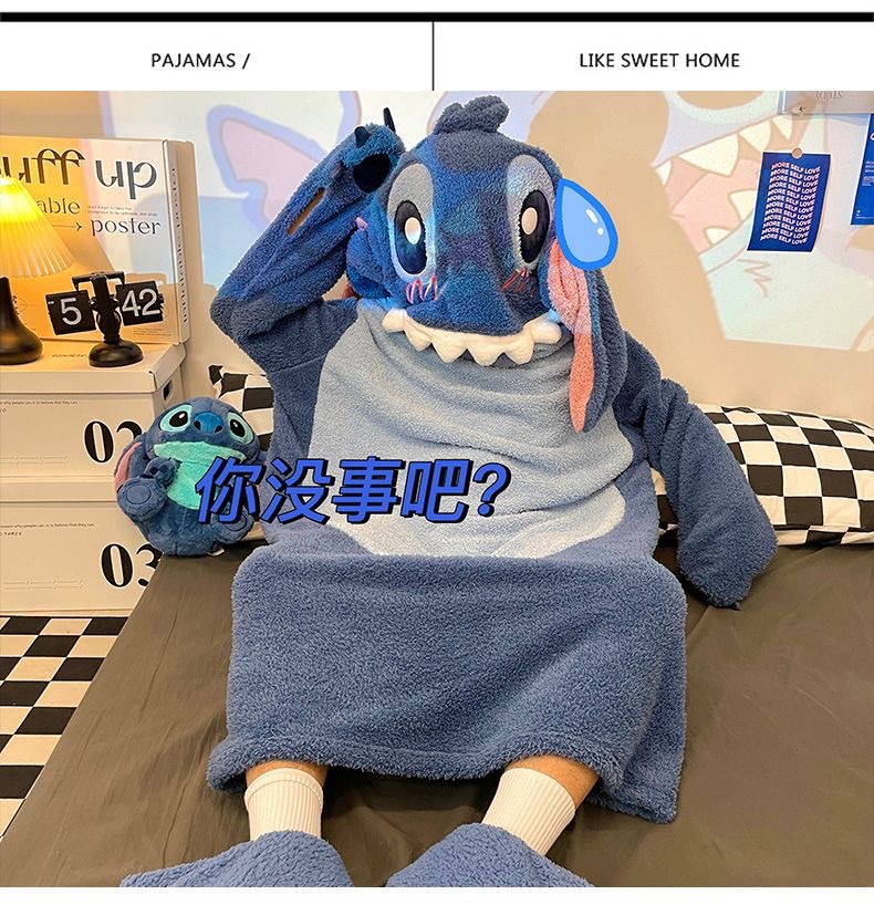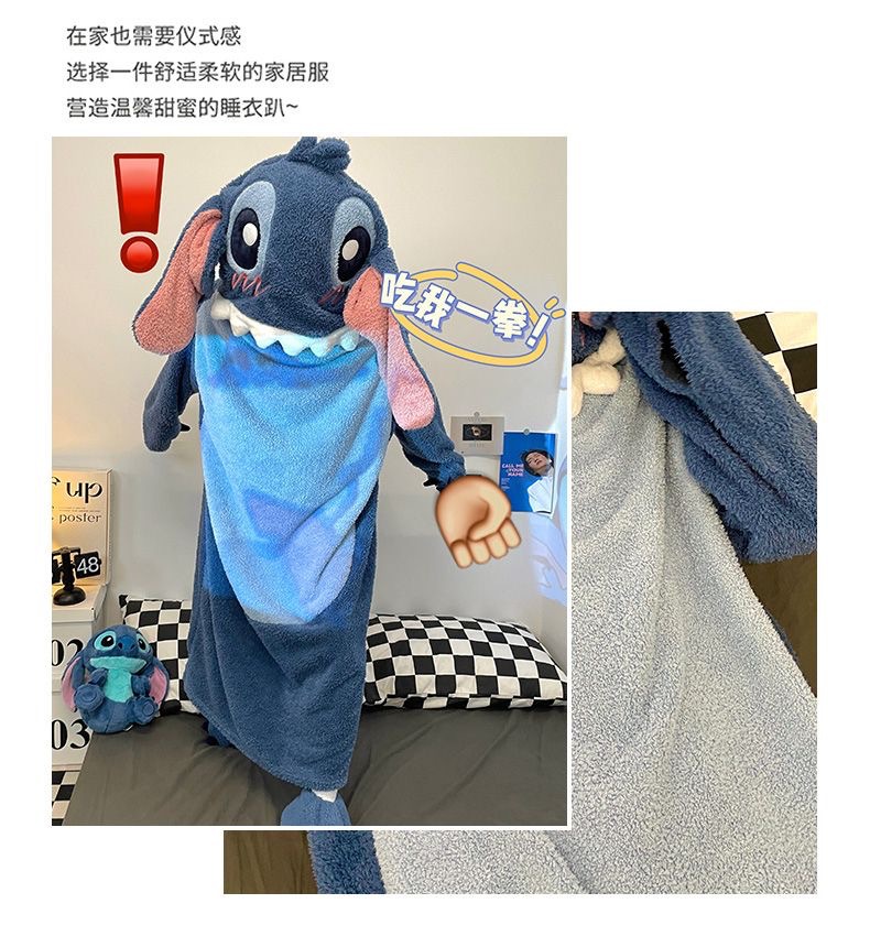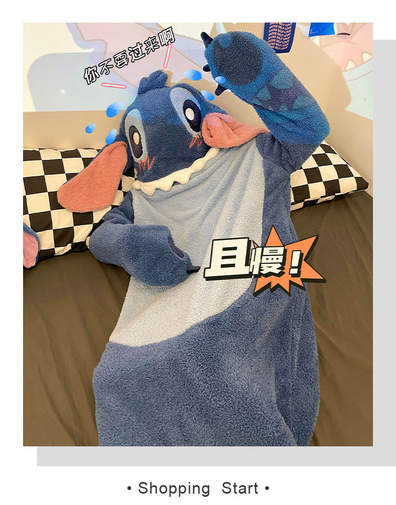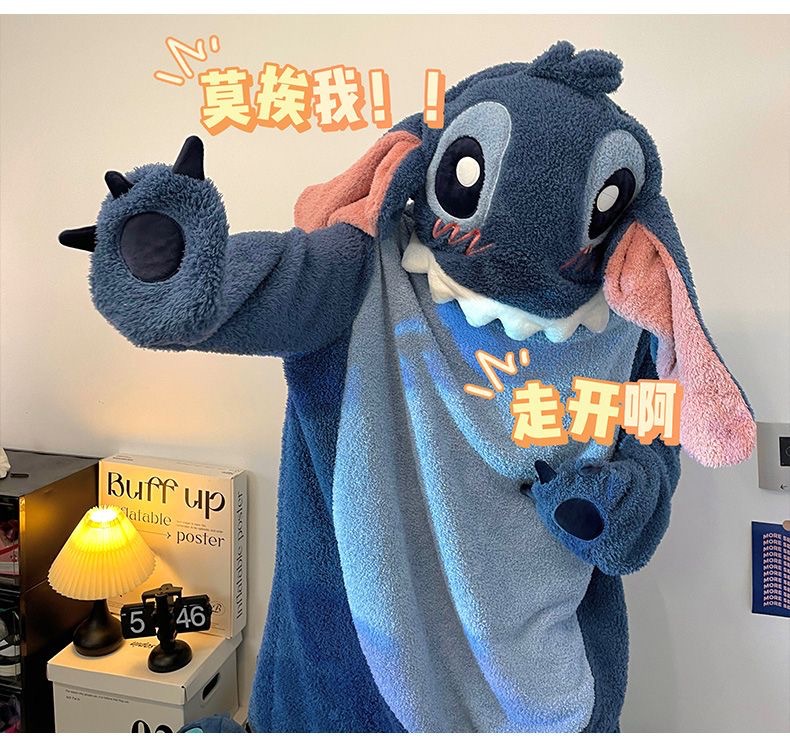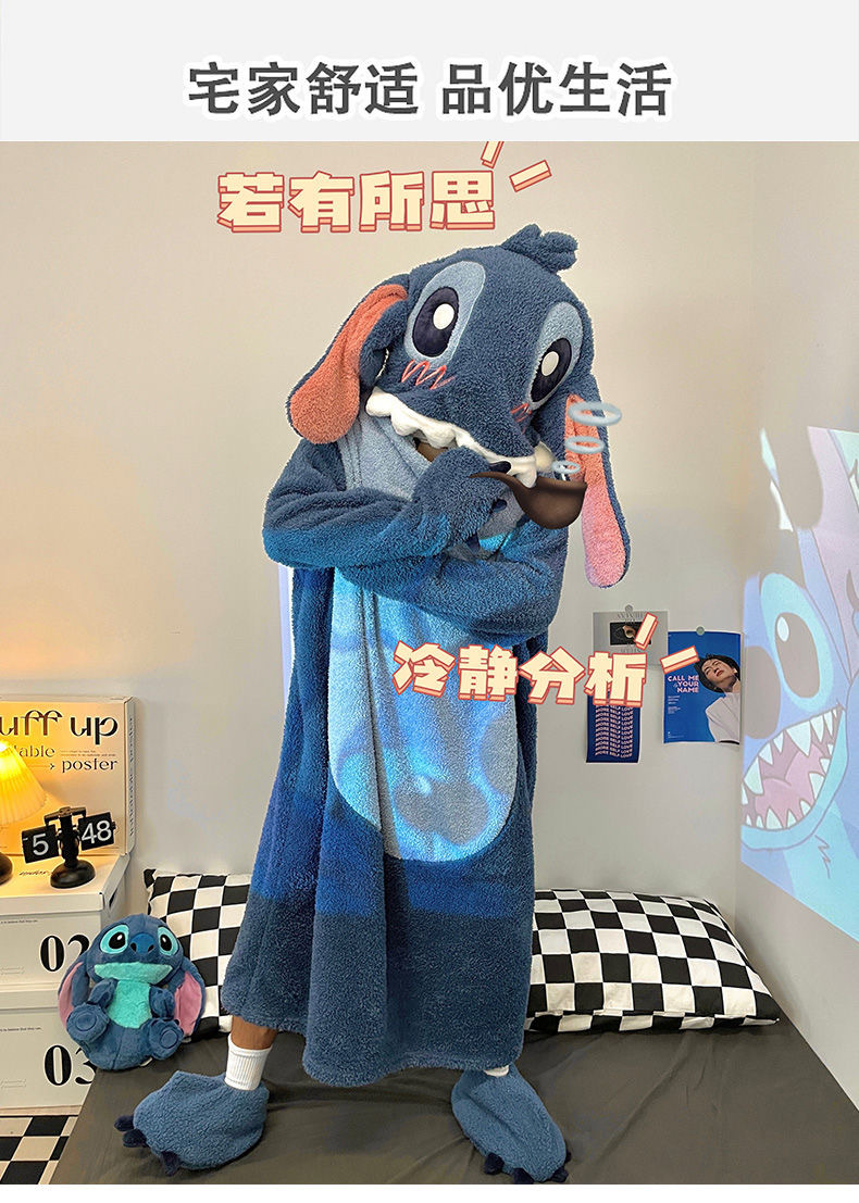 スティッチのパジャマの女性は冬にベルベットを厚くして、ゆったりしていて、冬に帽子のパジャマの家の服が外出できるのも不思議ではありません