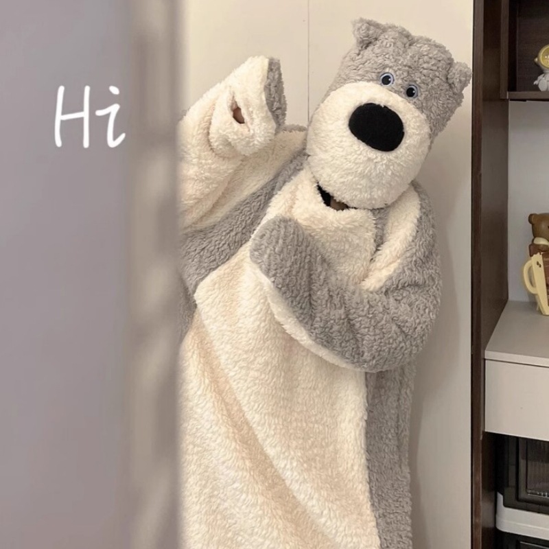 特別なオファー!!かわいい漫画のナイトガウン大きな目のコーラルベルベットのパジャマ女性のための 2025 新しい冬厚いネグリジェ