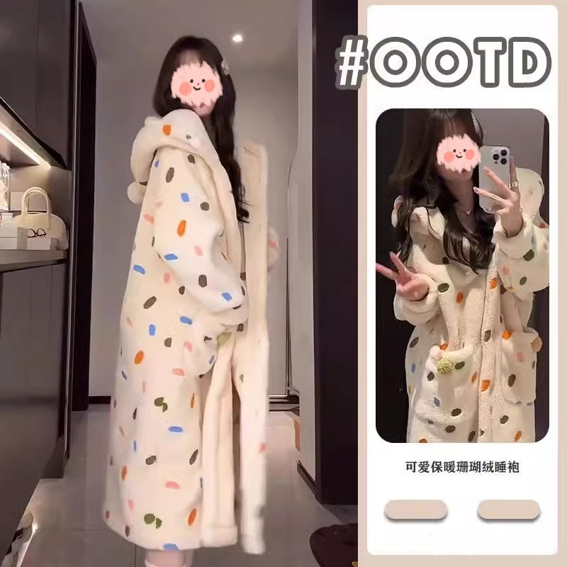 特別なオファー!!ソフトガールかわいいクロミコーラルベルベットナイトガウン厚みのあるフランネルパジャマ女性のための 2025 新しい冬