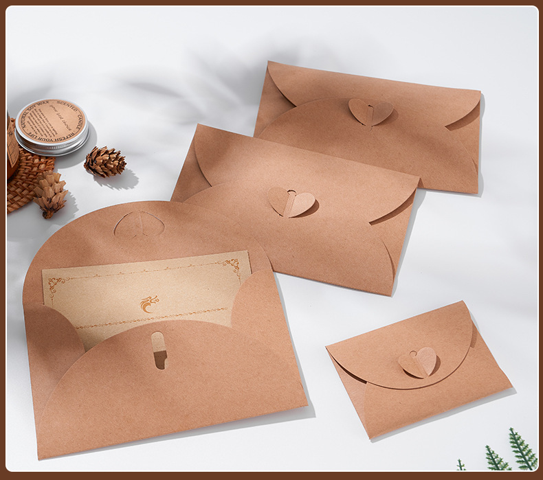 クラフト紙封筒ヨーロッパ風桃心トランペット封筒空白シンプルなグリーティングカード封筒袋に白いページを加えて手書きできる