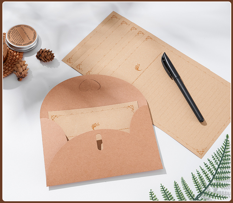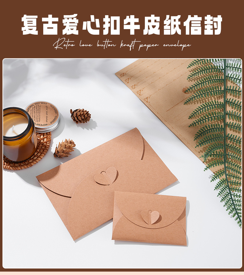 封筒の便箋セット愛のボタンの形の復古風のラブレターのクラフト紙の簡単な創意表の告白のカップルの便箋の封