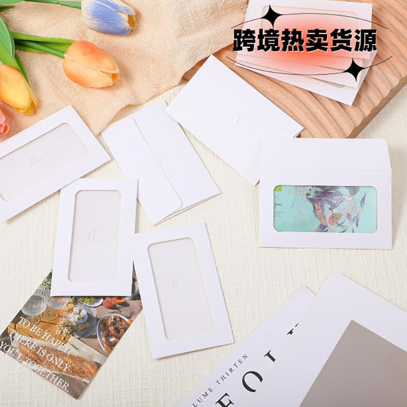 亚马逊厂家批发牛皮纸爱心扣开窗贴窗PET彩色彩卡信封会员卡信封