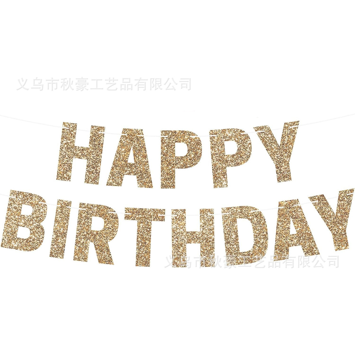 クロスボーダー専用金葱粉連体誕生日横断幕バラ金フラッシュ粉アルファベット旗誕生日パーティー装飾品