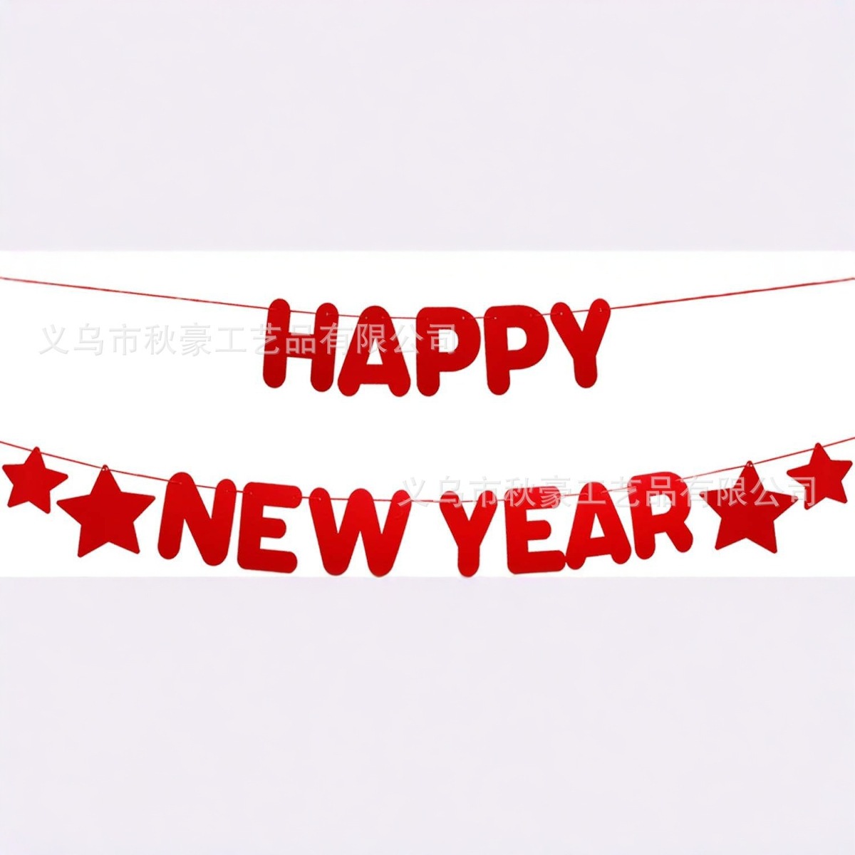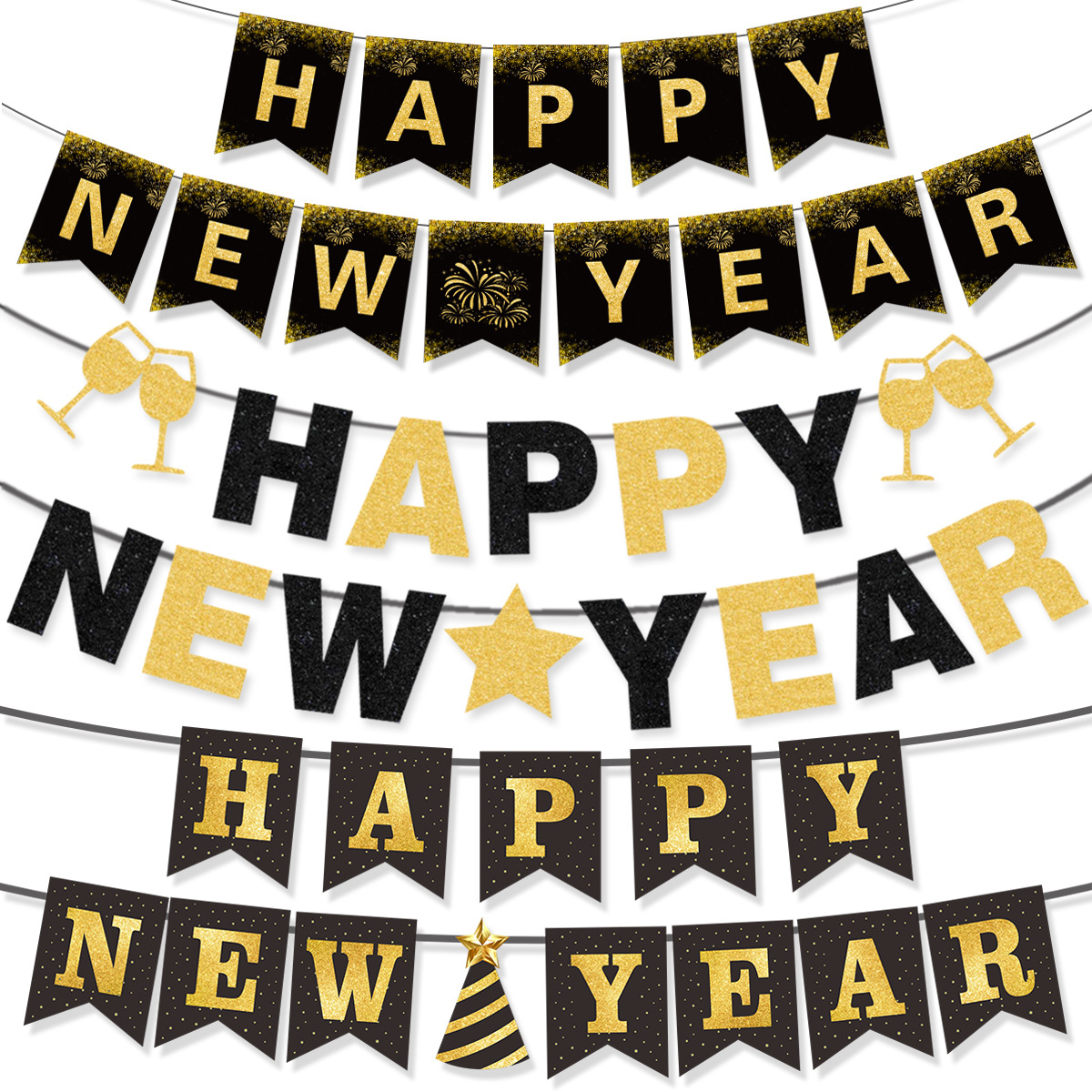 2026跨境新年派对装饰元旦跨年晚会家庭学校布置黑金拉旗横幅批发
