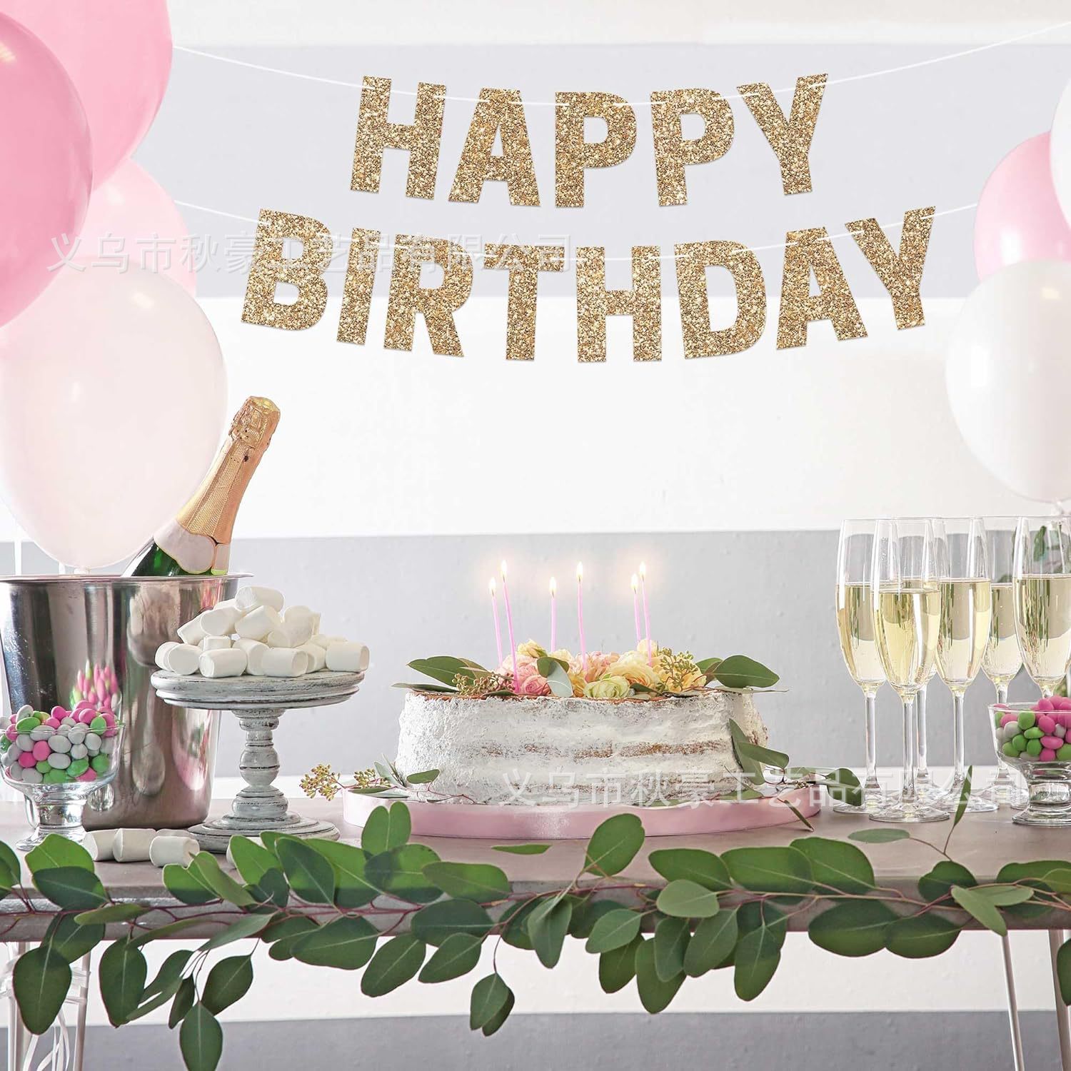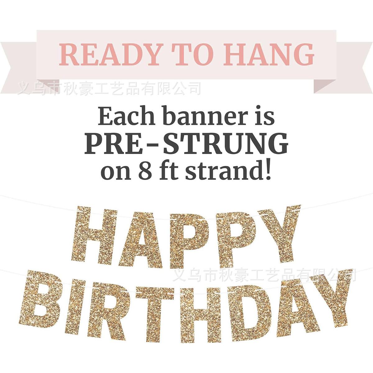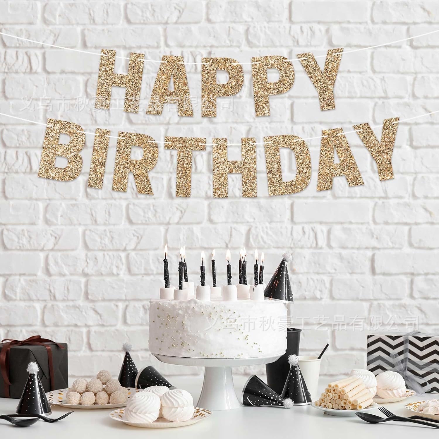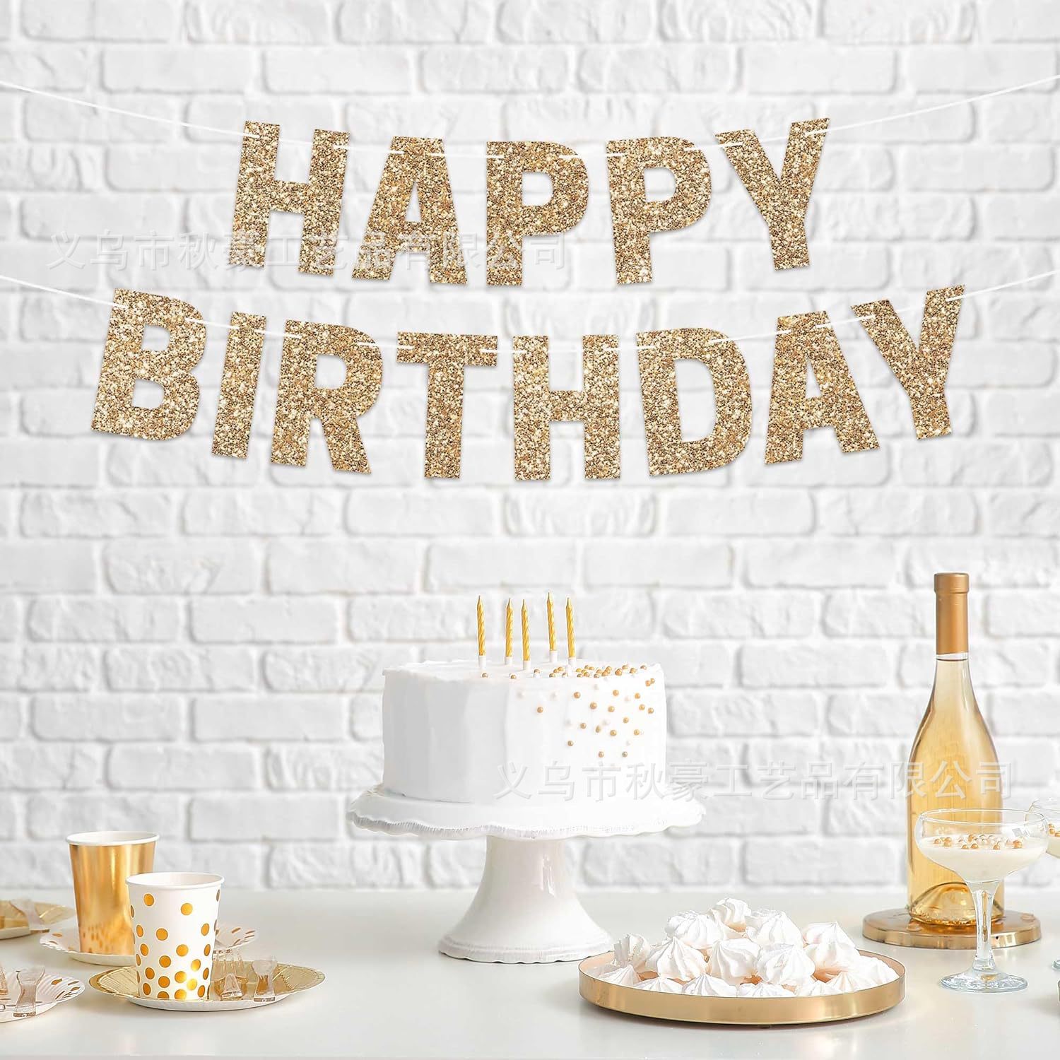 跨境一套生日派对装饰品香槟色“生日快乐”横幅闪光卡纸室内布置