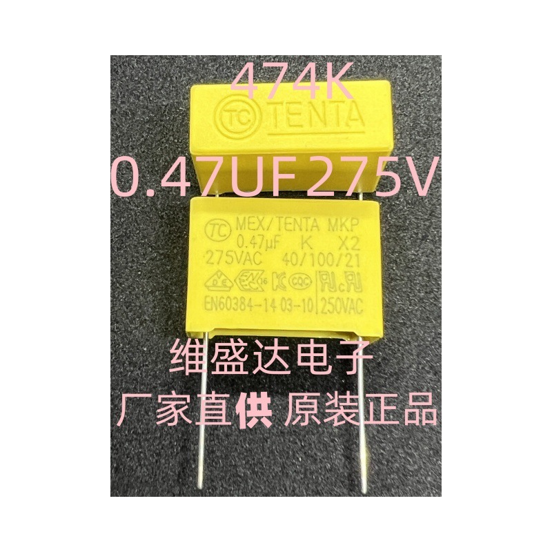 TC安全規格薄膜コンデンサ 474K0.47UF275VAC AC X2~ピン間隔15/22.5MM
