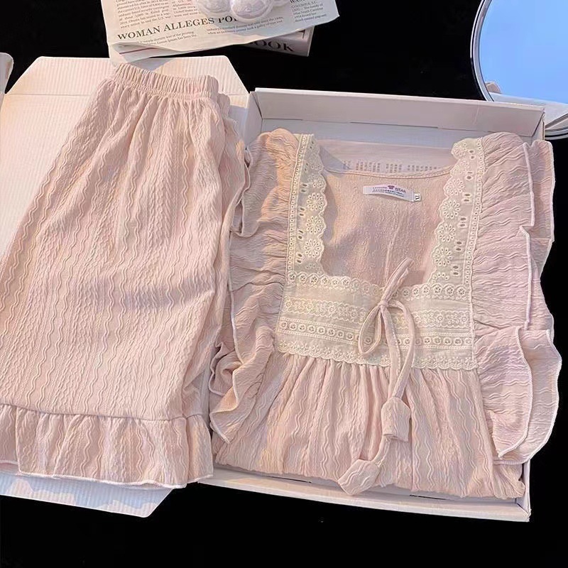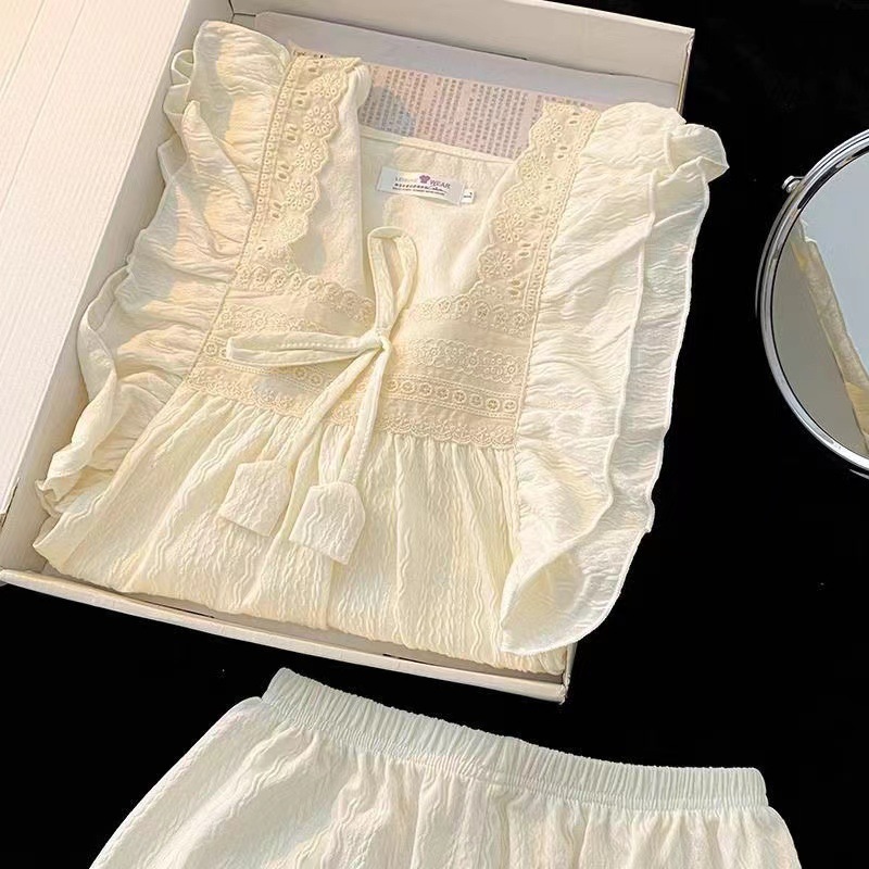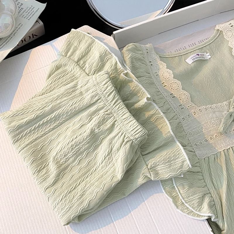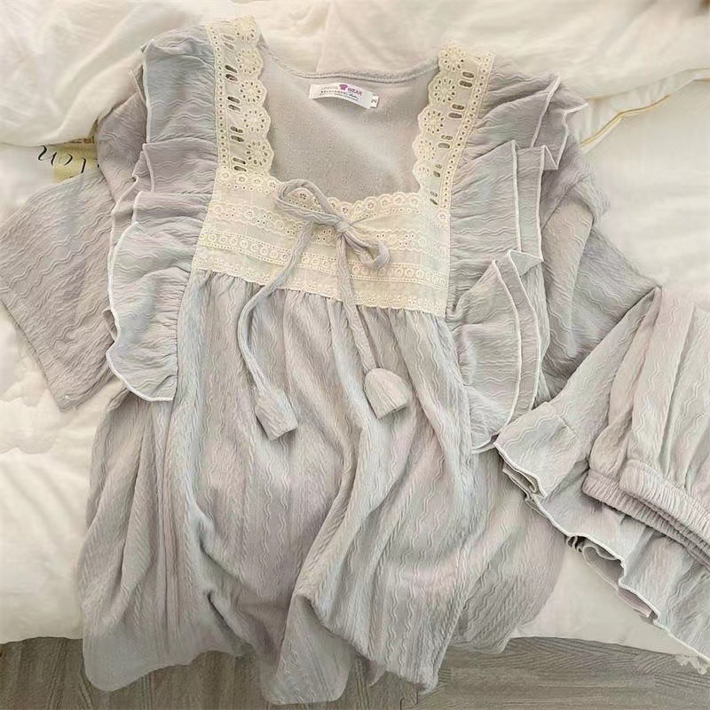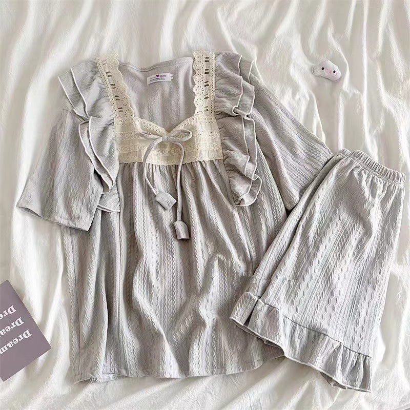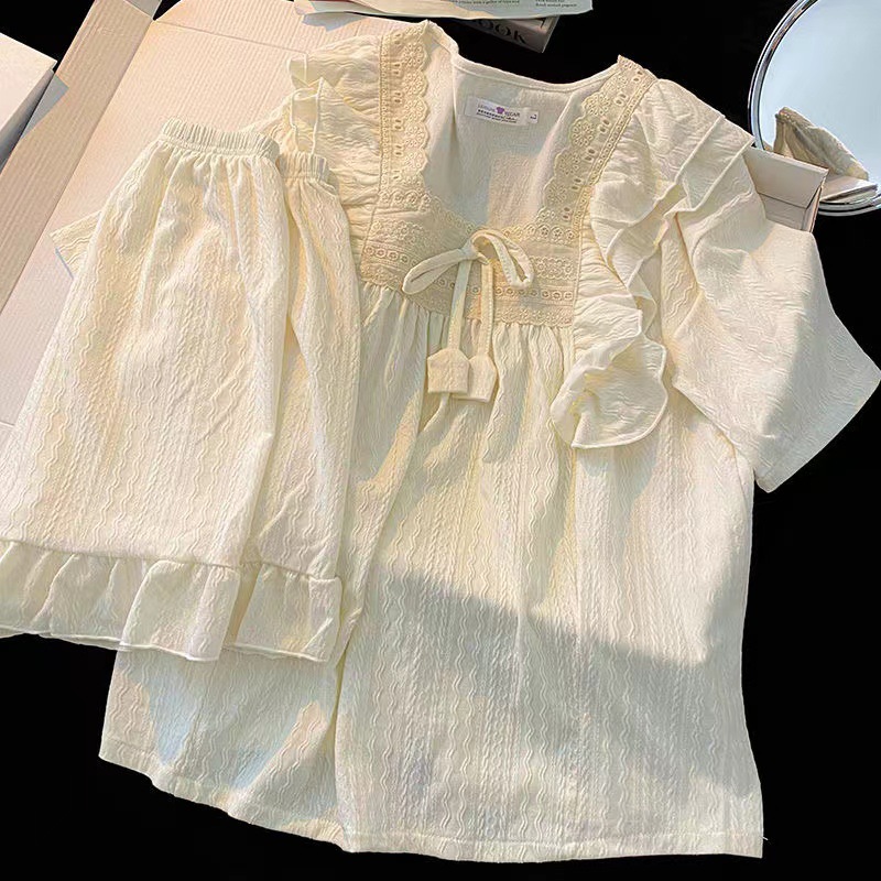 お姫様風パジャマ女性夏甘美綿ジャカード半袖パンツ純色ゆるい少女の家でカジュアルに着ることができる