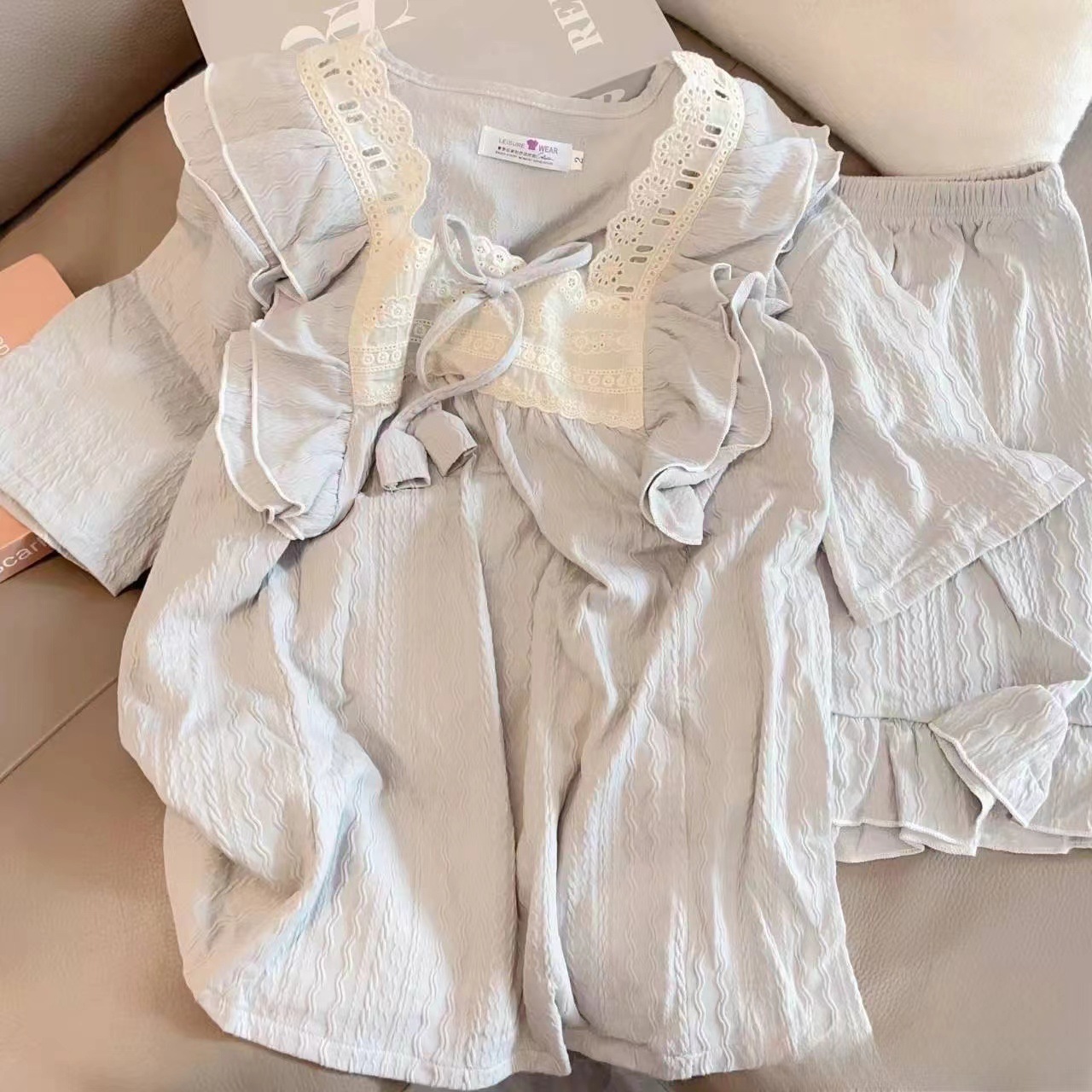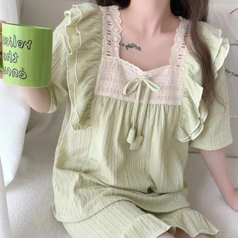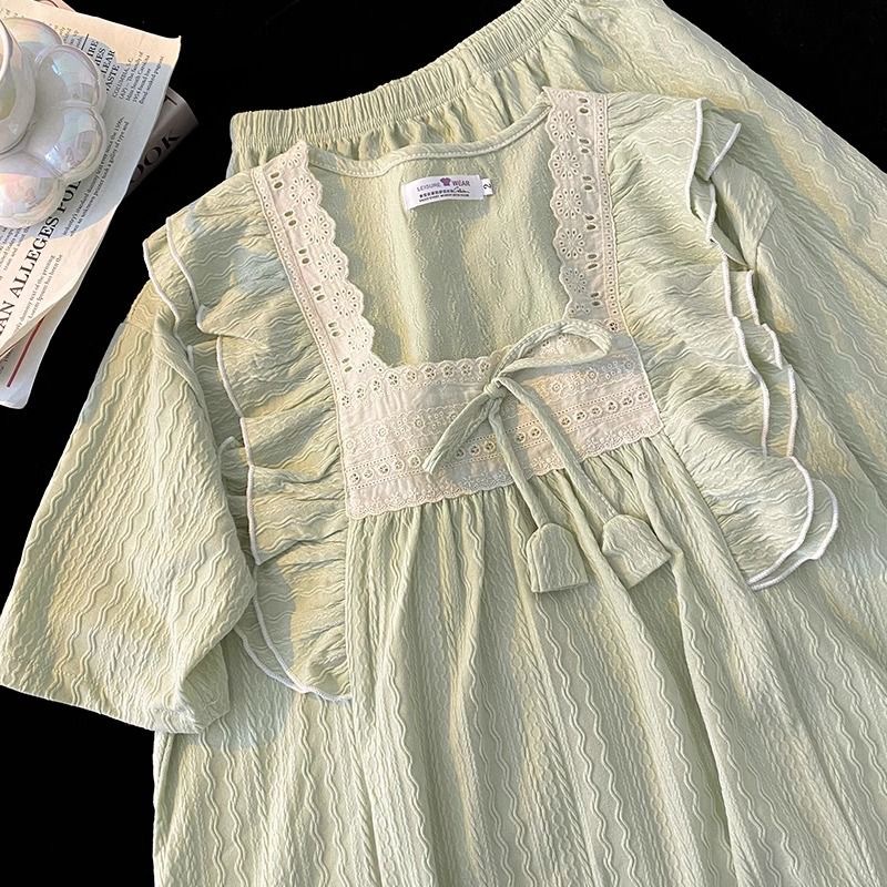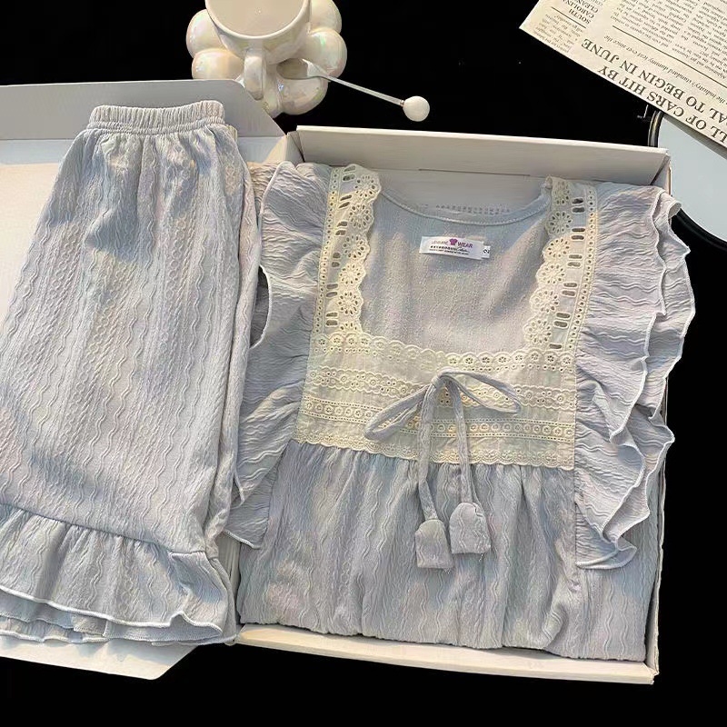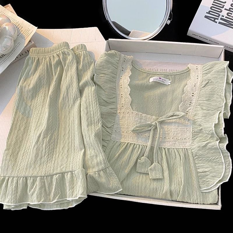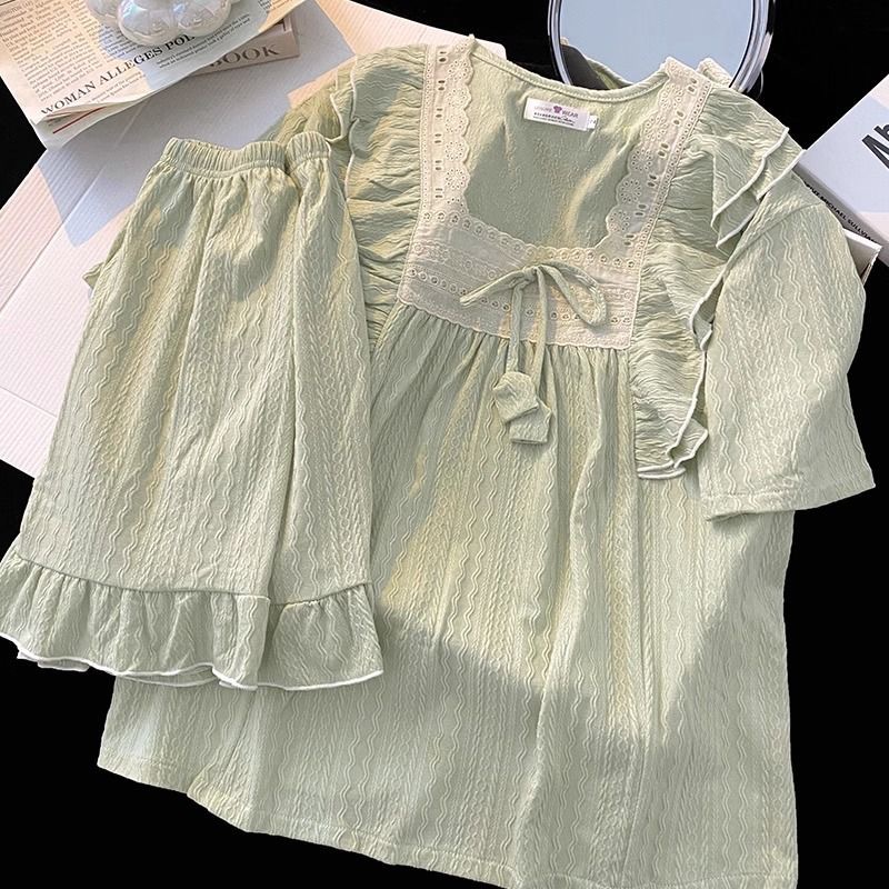 お姫様風パジャマ女性夏甘美綿ジャカード半袖パンツ純色ゆるい少女の家でカジュアルに着ることができる