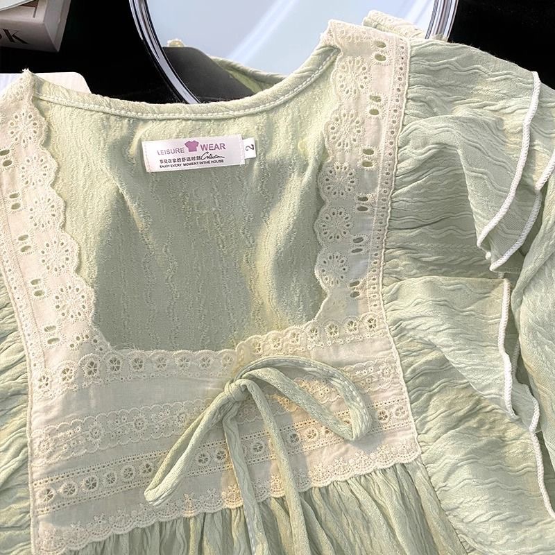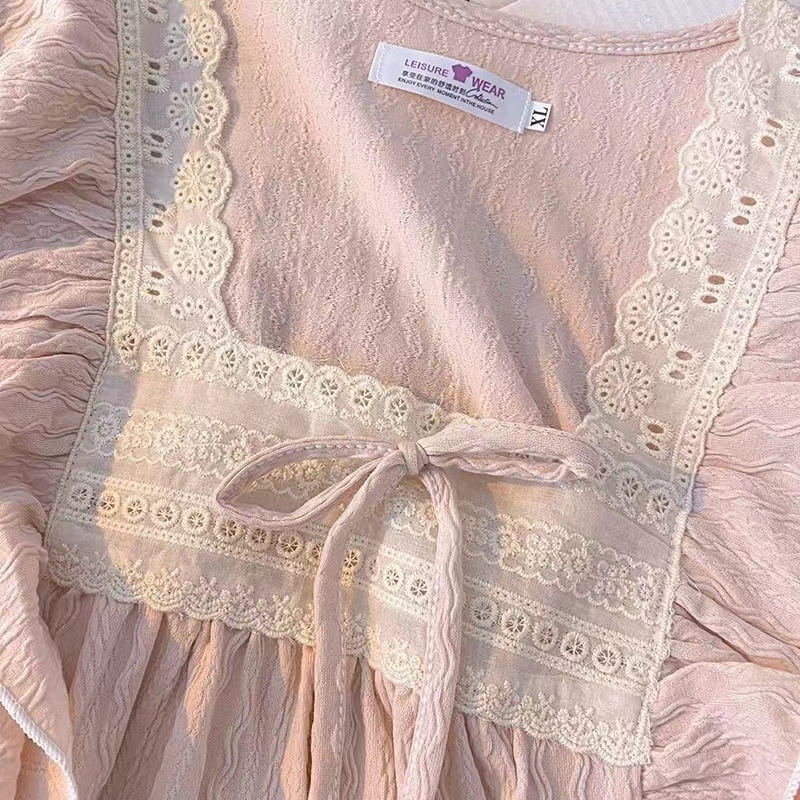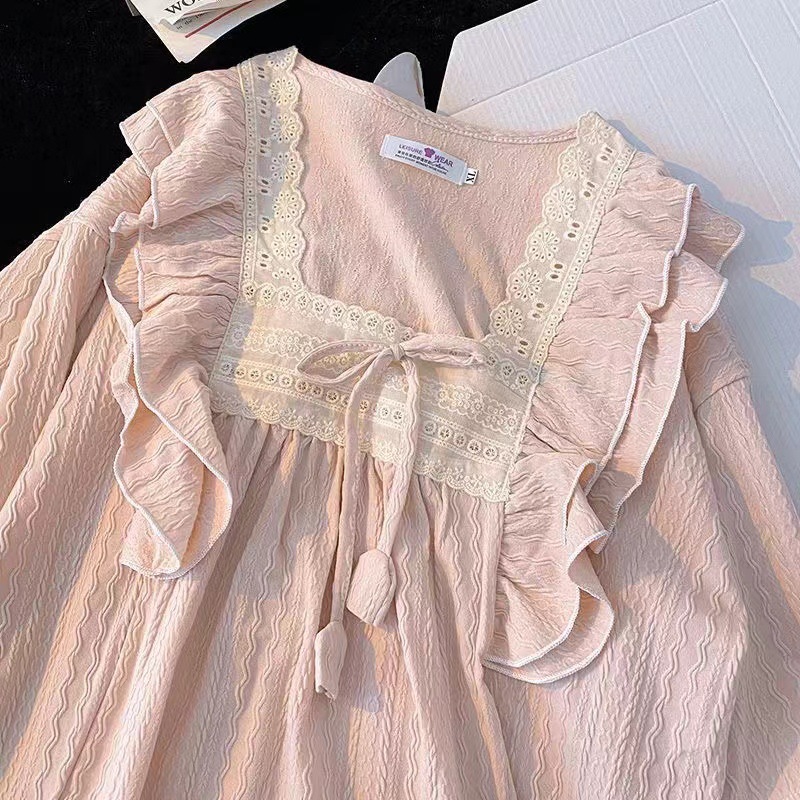 春の新型長袖パジャマの女性田園風砕花襟カーディガンは綿のしわの布のゆったりした少女の甘いスーツに似せています。