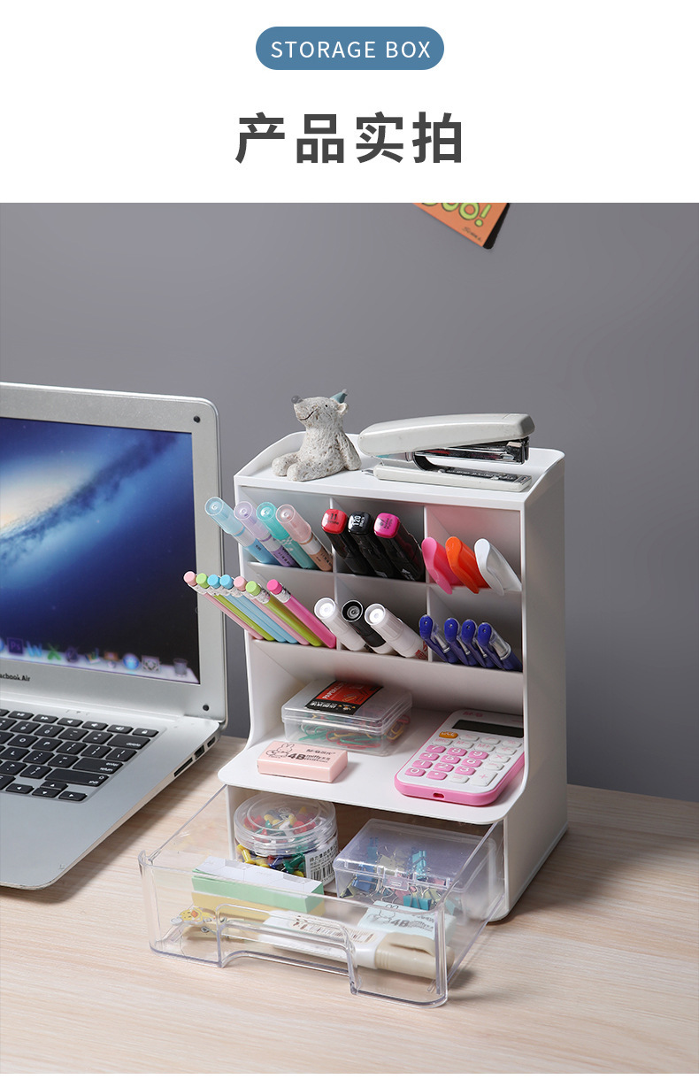 斜め挿し式デスクトップ文房具収納ボックス学生多格筆筒収納ボックス引き出し付き口紅化粧品収納ボックス