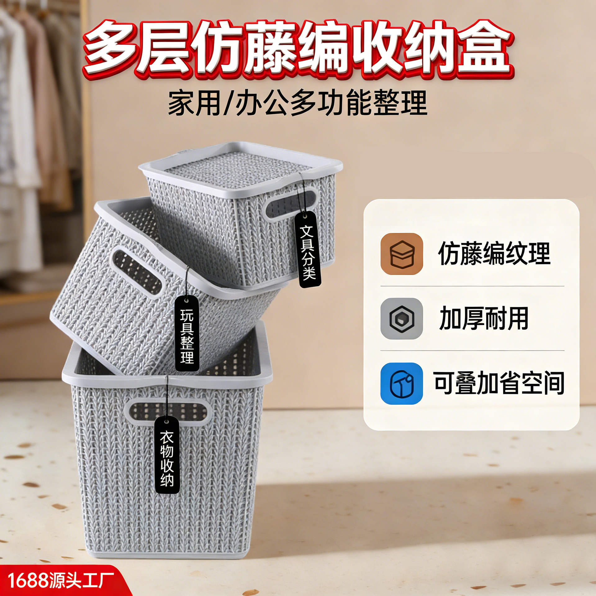 収納ボックスポータブル籐プラスチック蓋付き雑貨スナックおもちゃ車の収納ボックス仕上げボックス大型収納ボックス