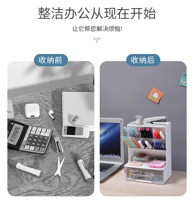 多功能桌面收纳盒斜插笔筒洞洞板抽屉三合一学生文具大量办公置物