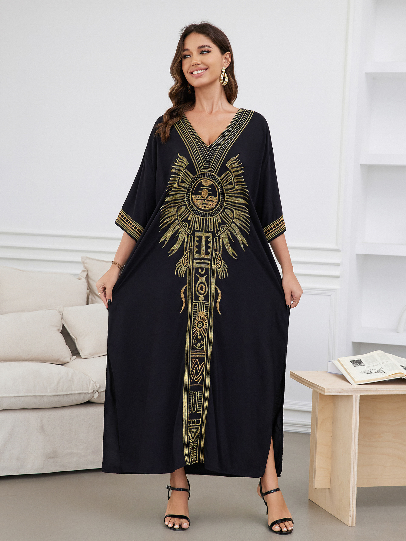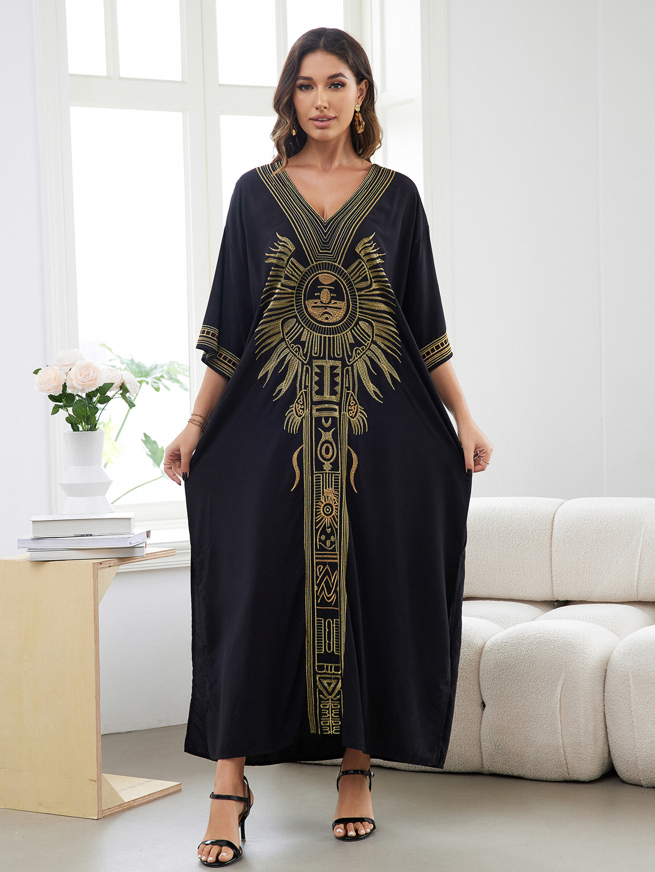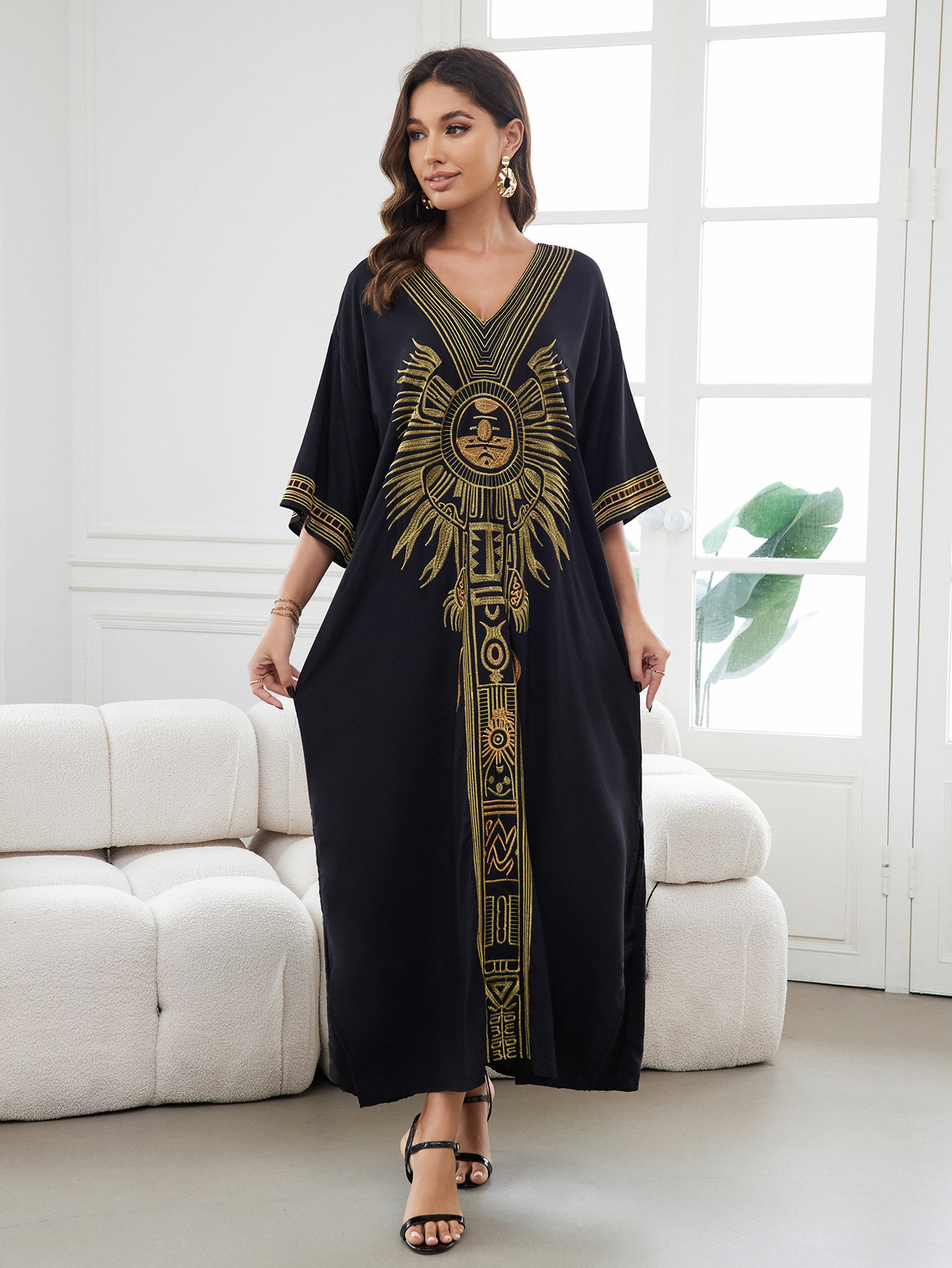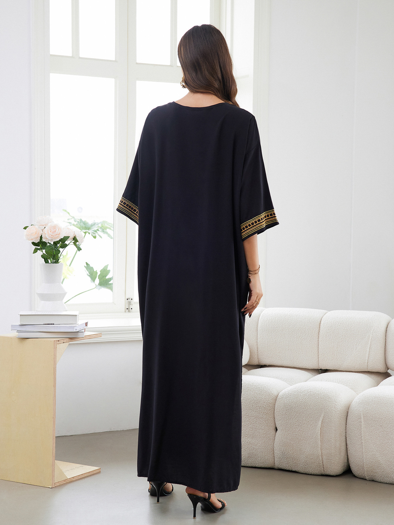 平铺衣长:135cm 肩宽:77cm 胸围:150cm 重量:300g 面料:人棉 手工测量误差2-3CM