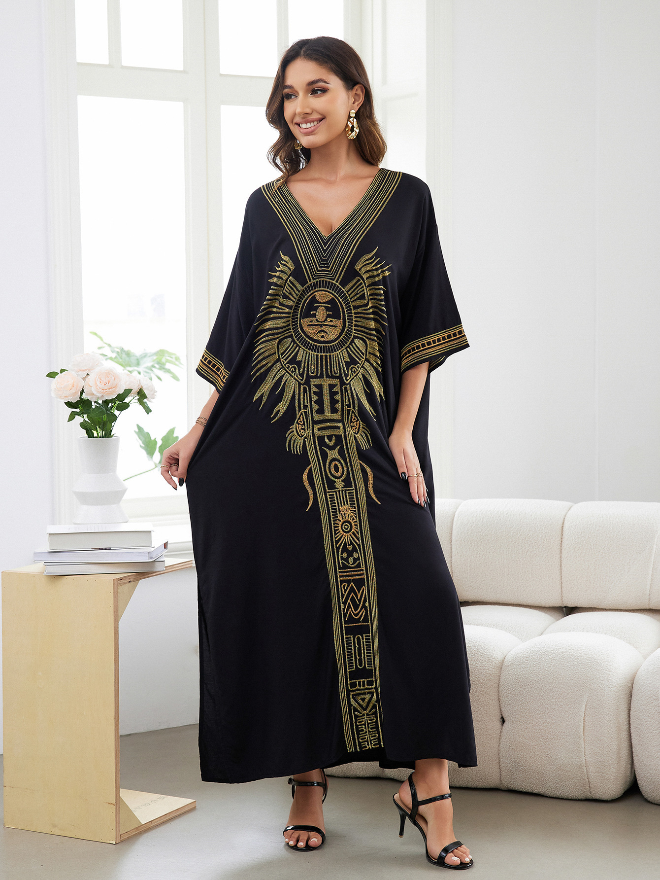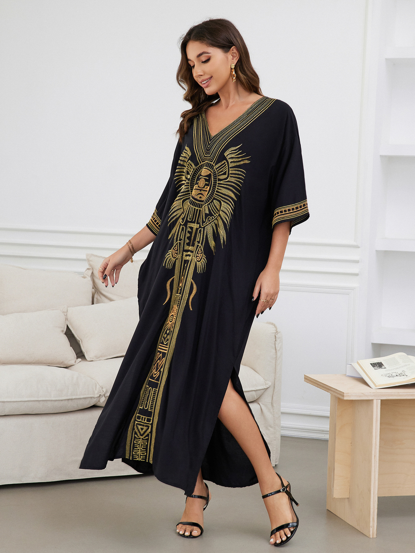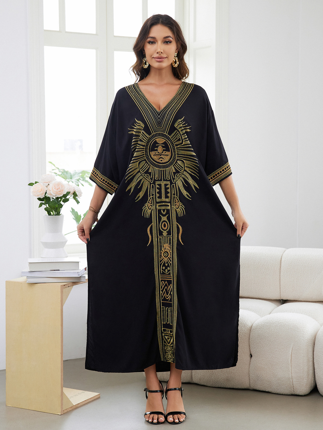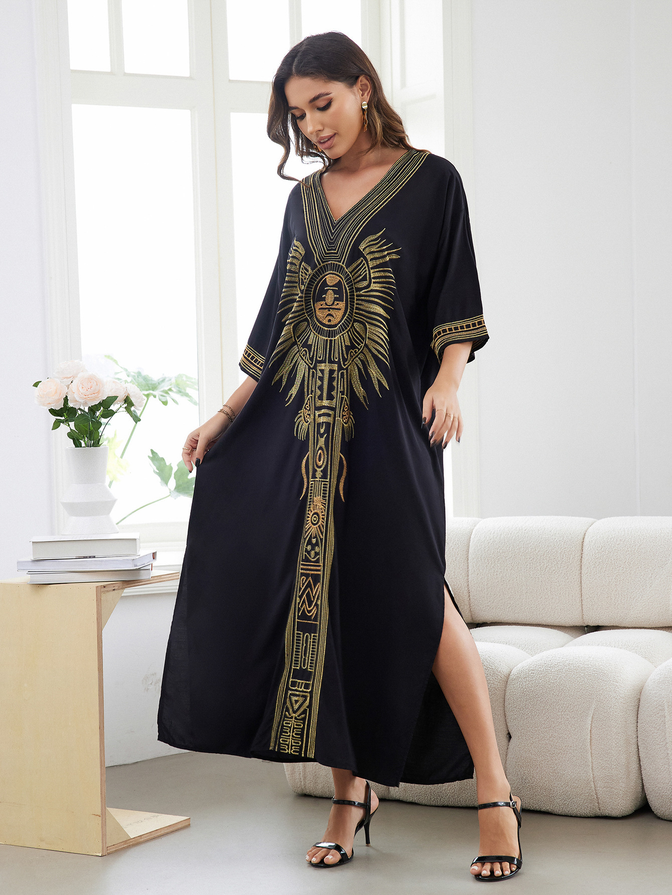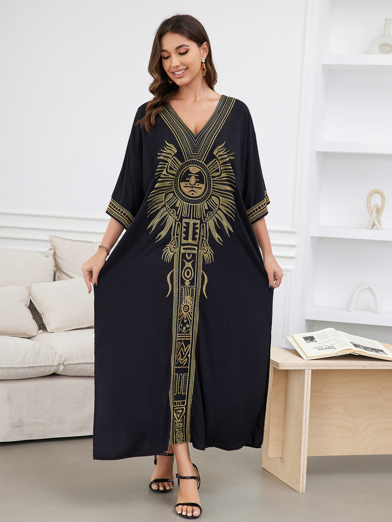 平铺衣长:135cm 肩宽:77cm 胸围:150cm 重量:300g 面料:人棉 手工测量误差2-3CM