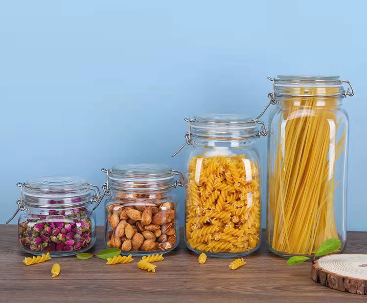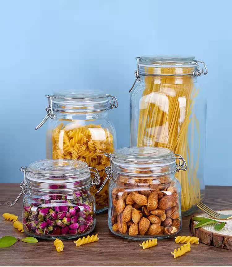 卸売りガラス密封缶ステンレスクリップ蜂蜜瓶ガラス貯蔵タンク五穀雑穀収納ケース茶葉缶