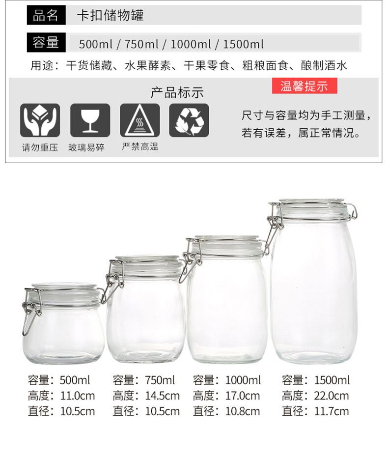玻璃密封罐透明空瓶卡扣玻璃罐储物罐酵素罐果酱瓶泡酒罐泡菜坛子