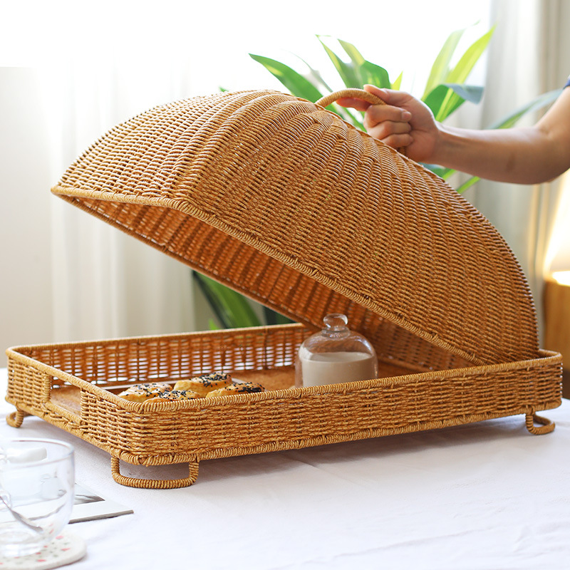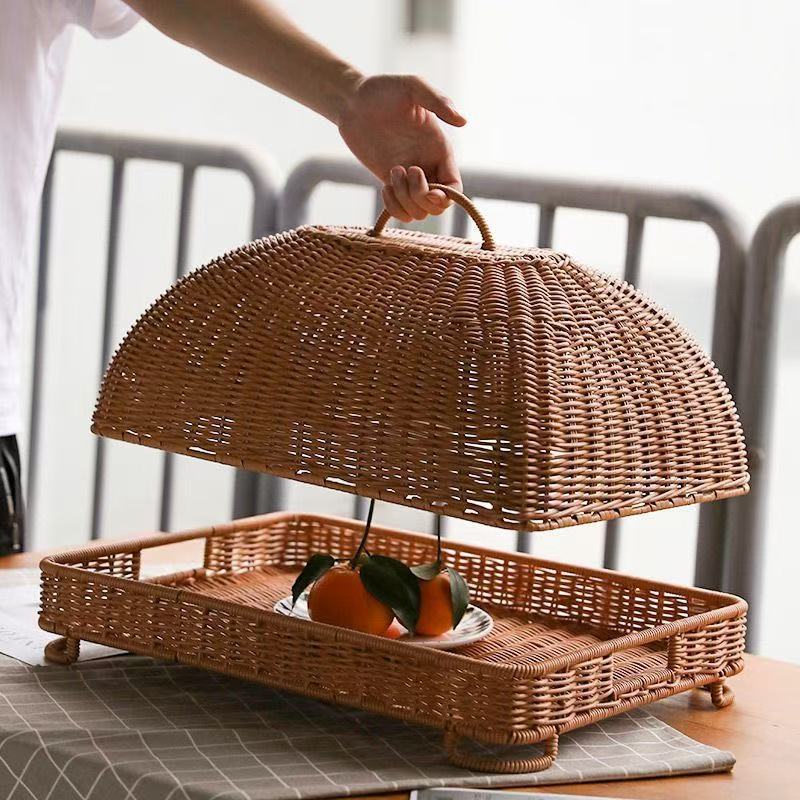 模造籐製食事カバー、正方形のテーブルカバー、食品カバー、フルーツカバー、ハエよけカバー、蓋付き防塵スナックプレートカバー