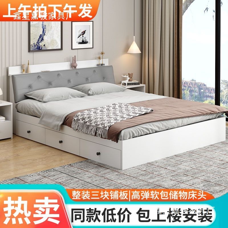 モダンでシンプルなソフトパッケージ収納ベッド 1.8m ダブルベッド 1.5m 家庭用 1.2 メートル賃貸住宅シングルベッドボックスベッド