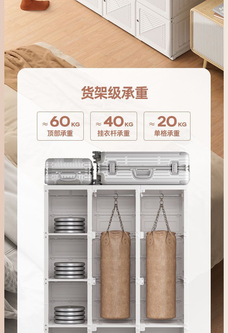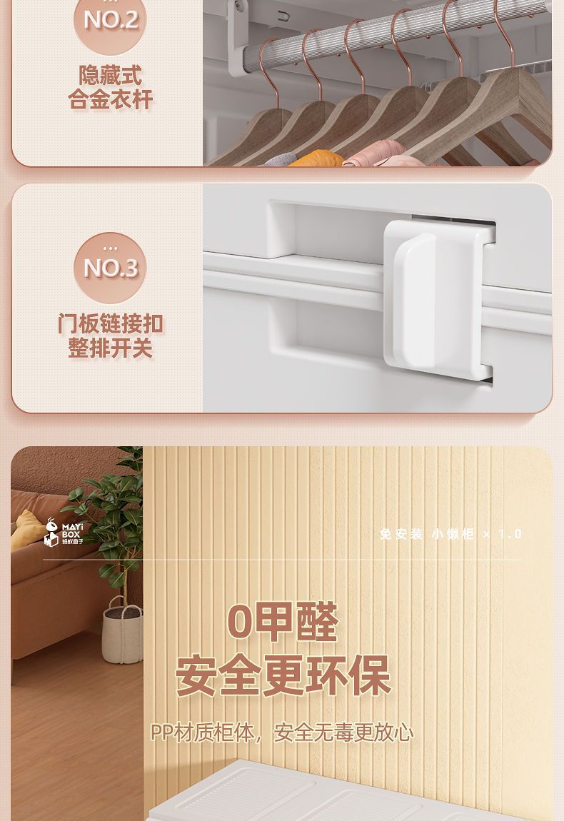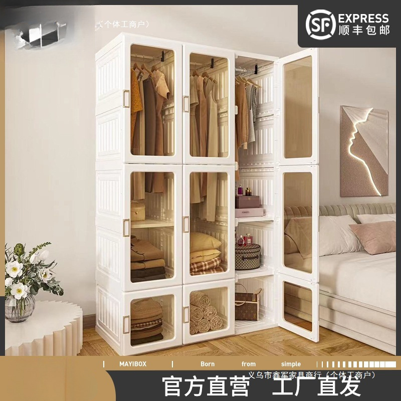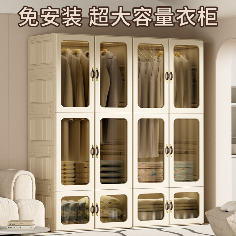 9W免安装衣柜简易衣柜结实耐用家用卧室折叠塑料柜子出租