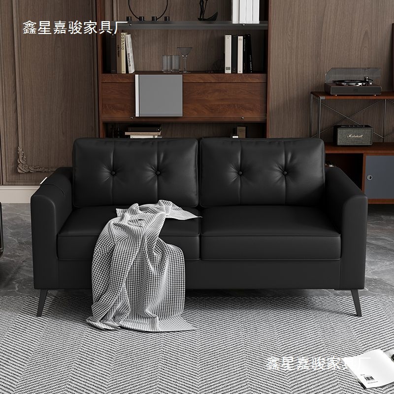 アパートソファ、小さなアパート、賃貸住宅、リビングルーム、理髪店、チェスとカードルーム、休憩受付、黒革布製二人掛けソファ