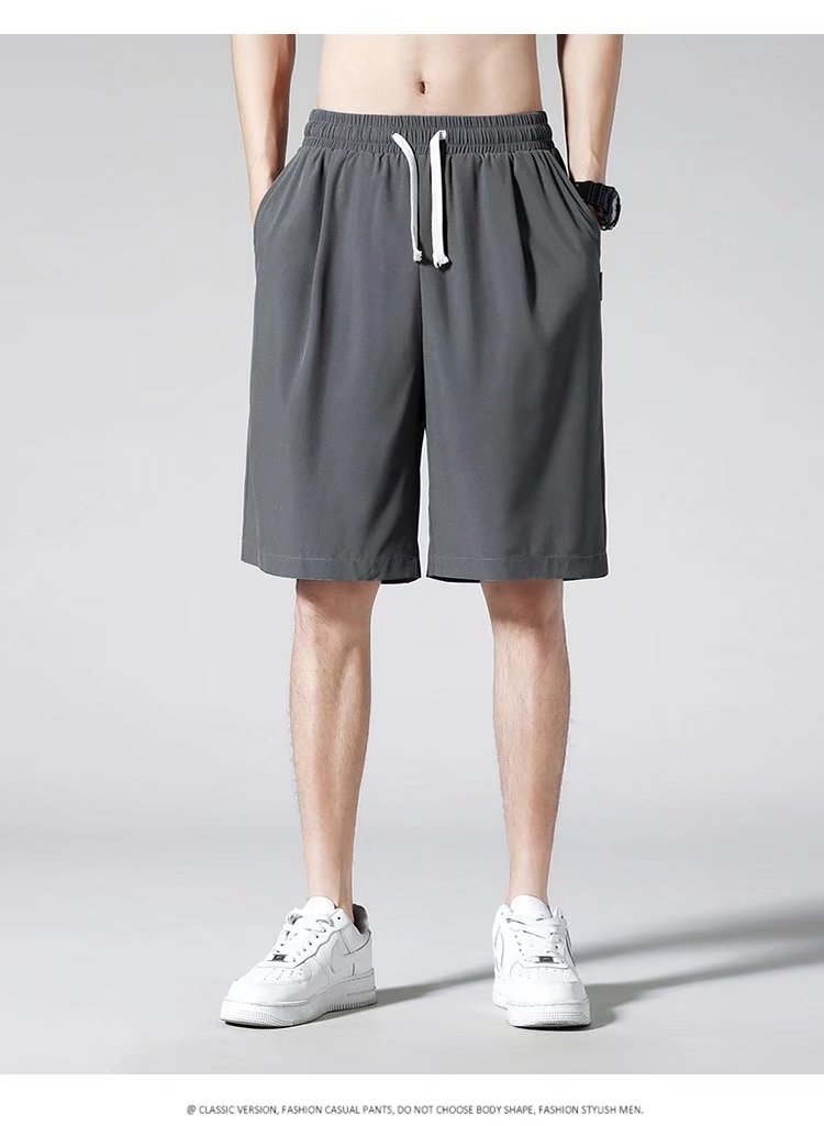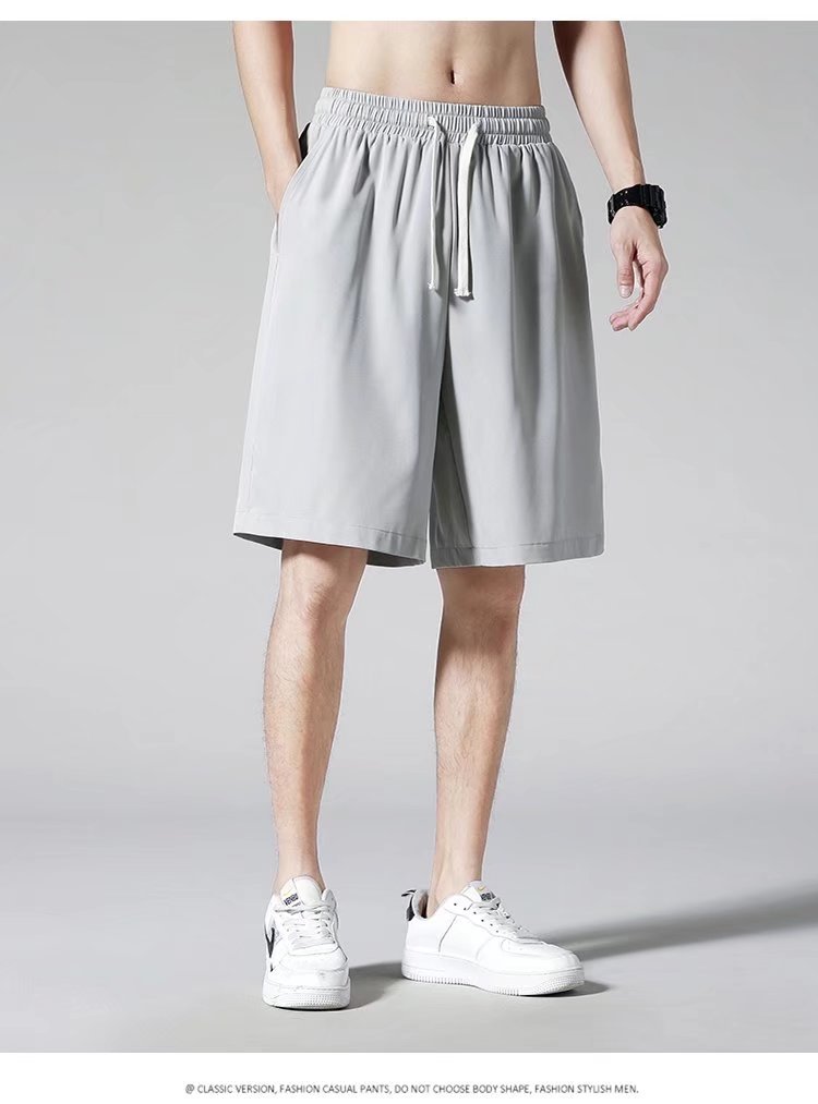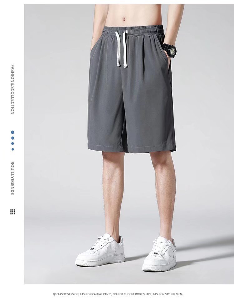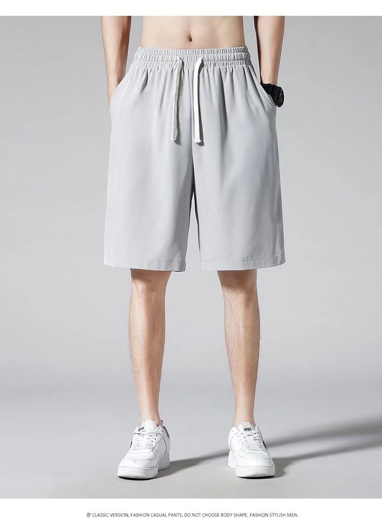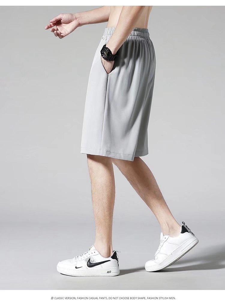 ゆったり薄手メンズカジュアルショーツ韓国風トレンディポケットジッパーミッドパンツウエストゴムアイスシルクパンツメンズ夏服