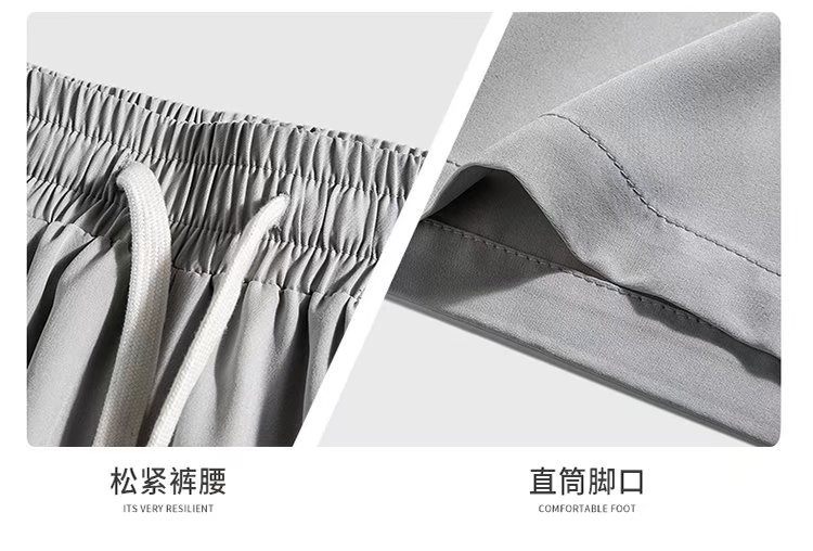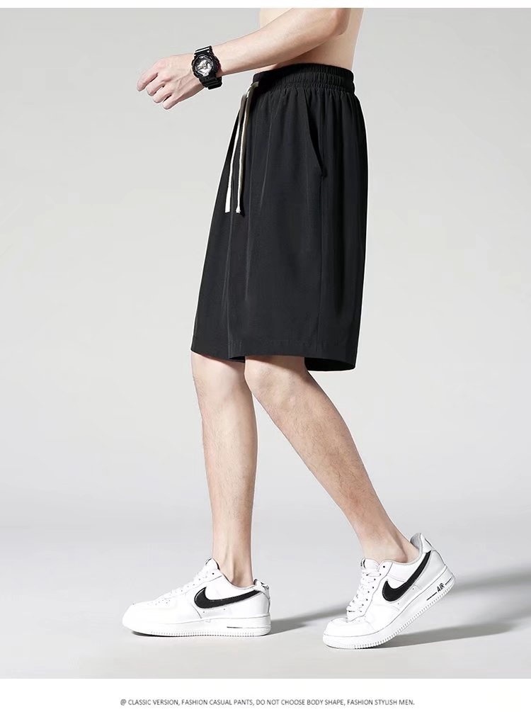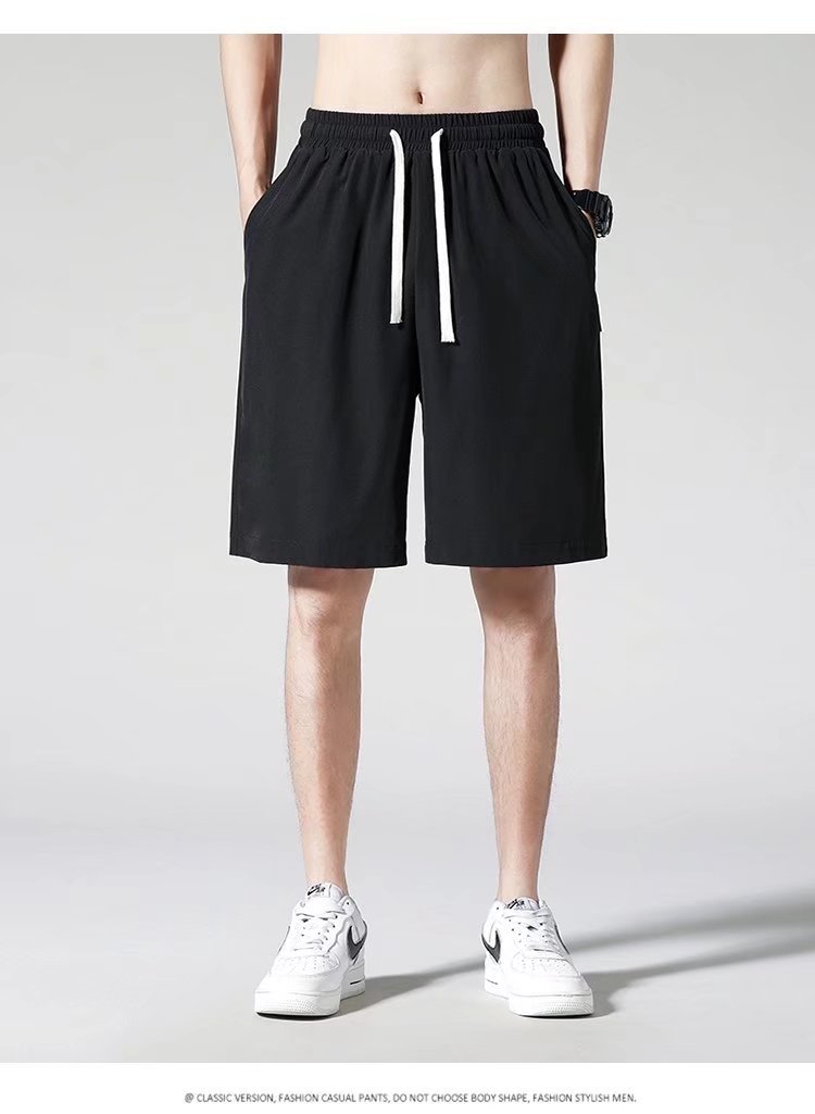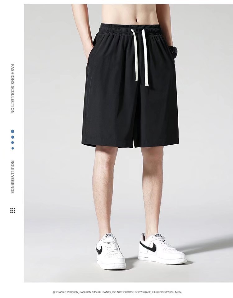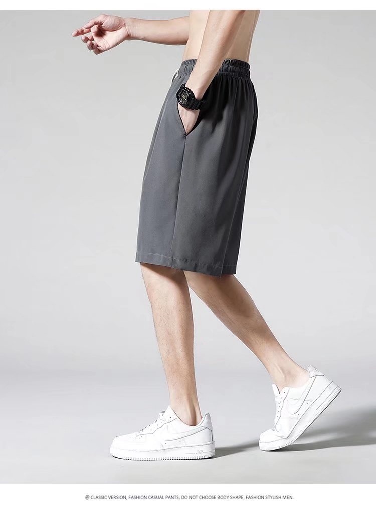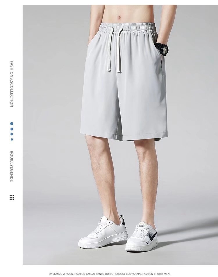 ゆったり薄手メンズカジュアルショーツ韓国風トレンディポケットジッパーミッドパンツウエストゴムアイスシルクパンツメンズ夏服