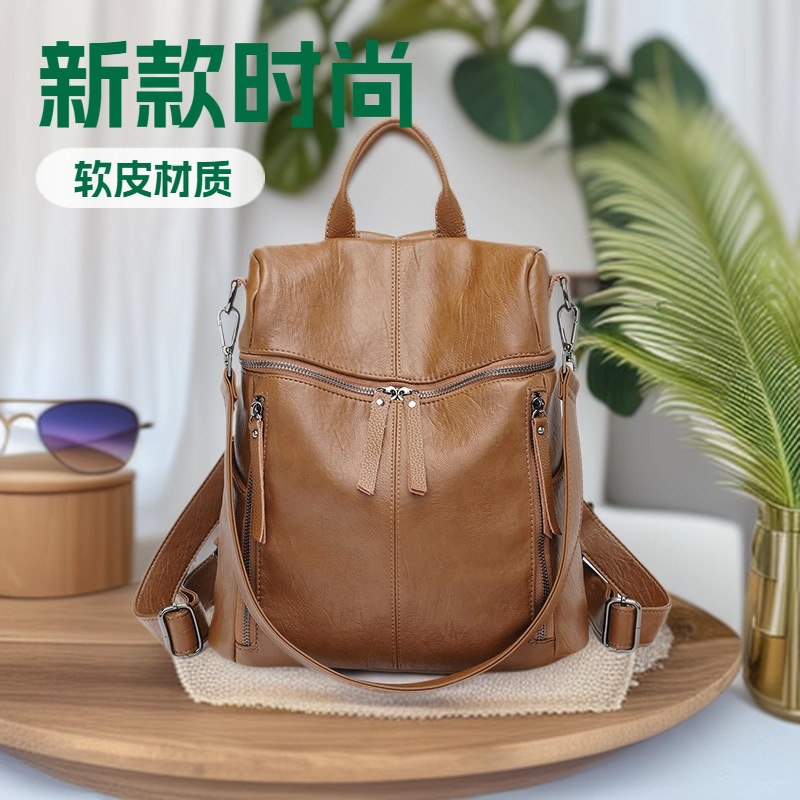 越境貿易本革レディースバッグ大容量バッグレディースシンプル多用途ソフトレザーショルダーバッグ第一層牛革クロスボディバッグ