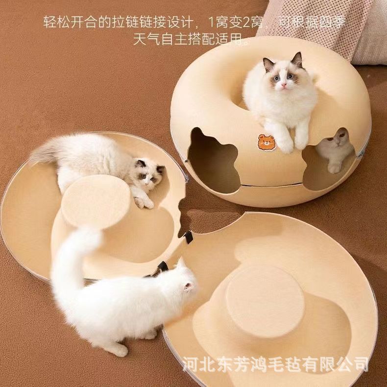 国境を越えた卸売フェルト製猫用ベッド、四季通用ペットベッド、半密閉型一体成型猫用ベッド、猫用トンネル、手作り