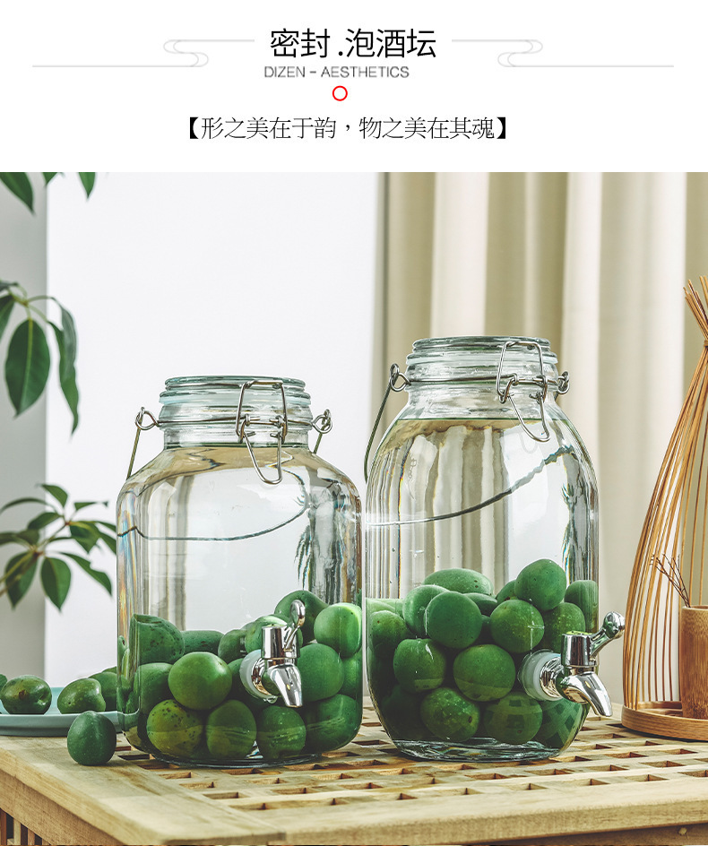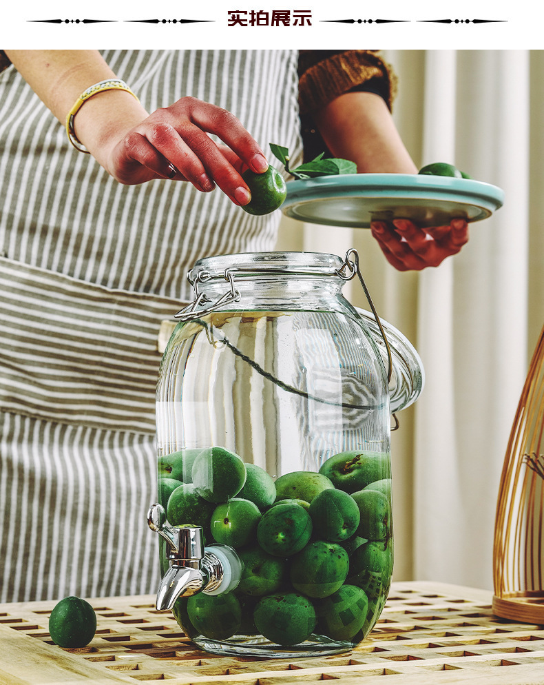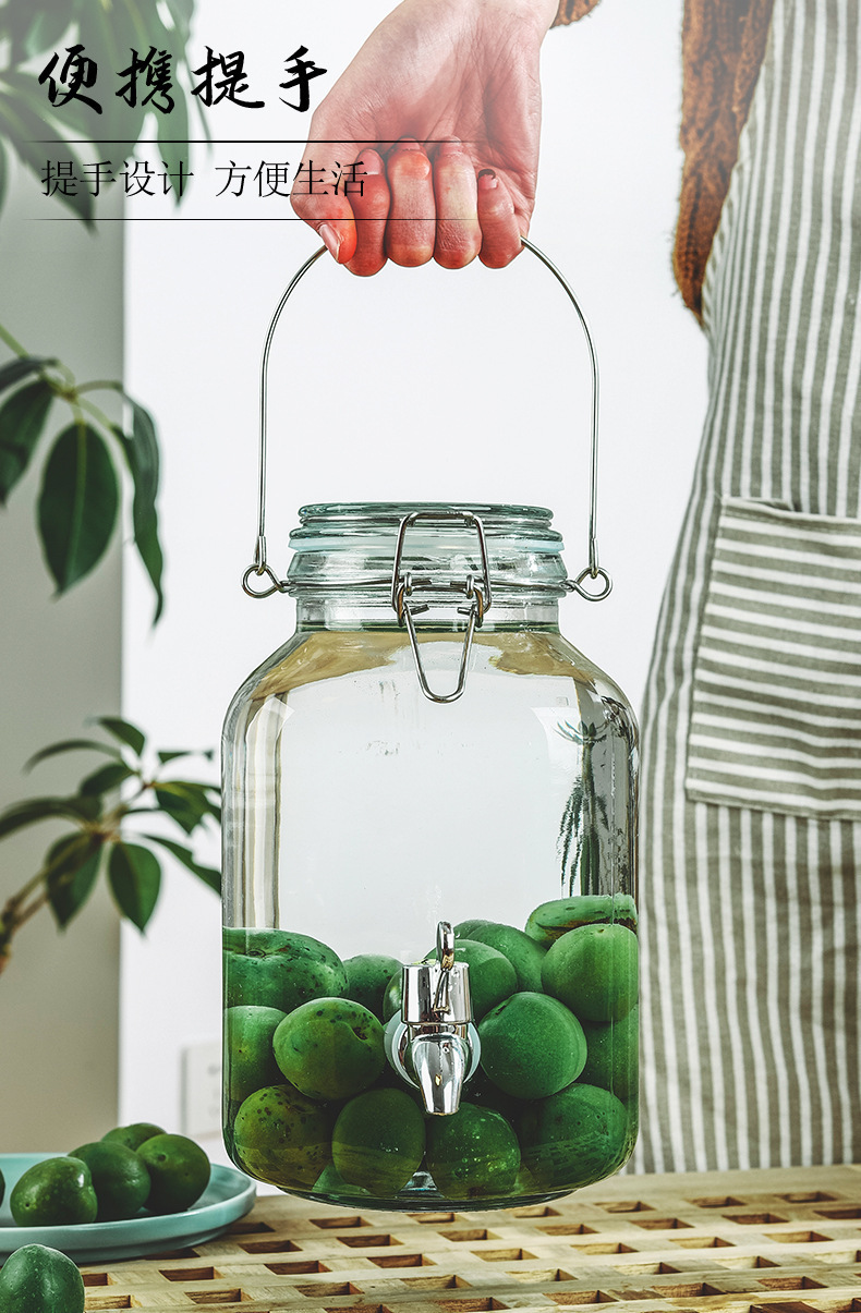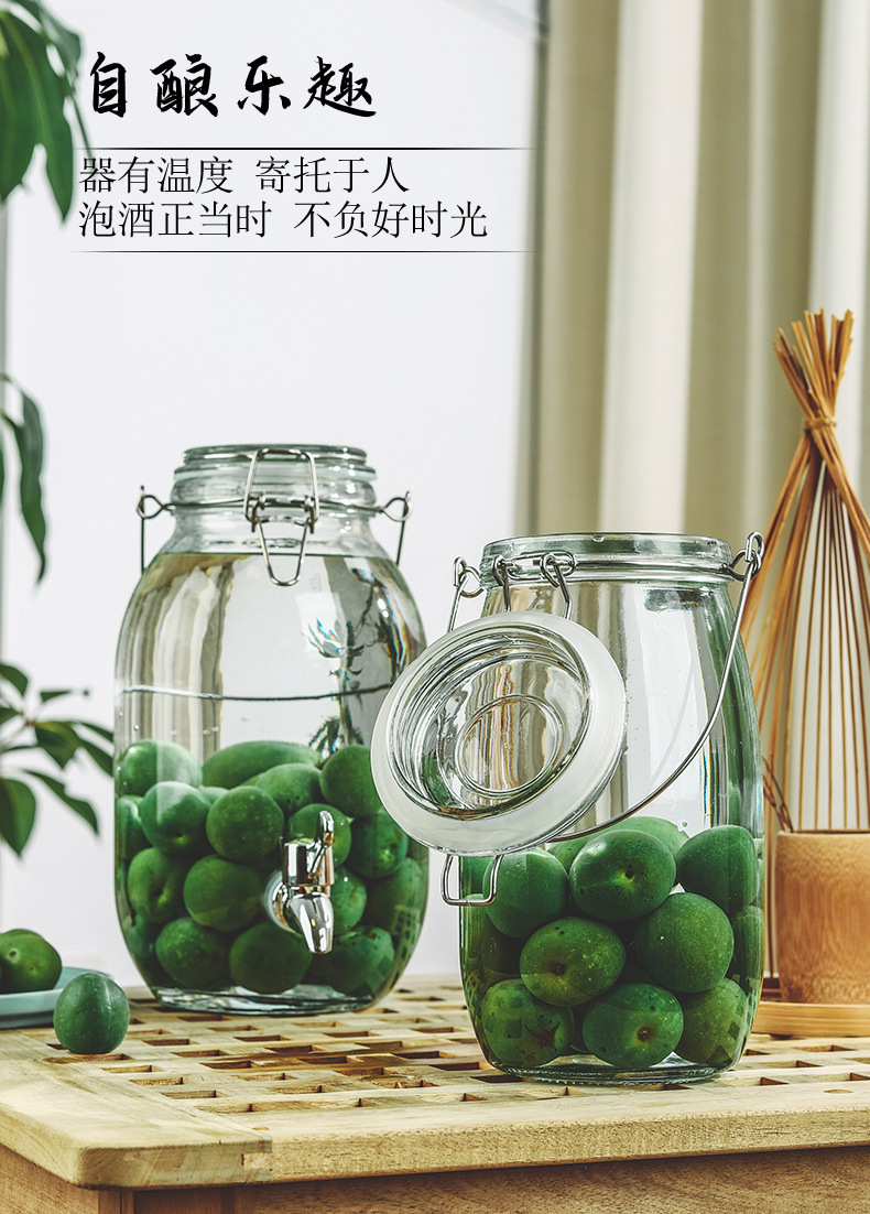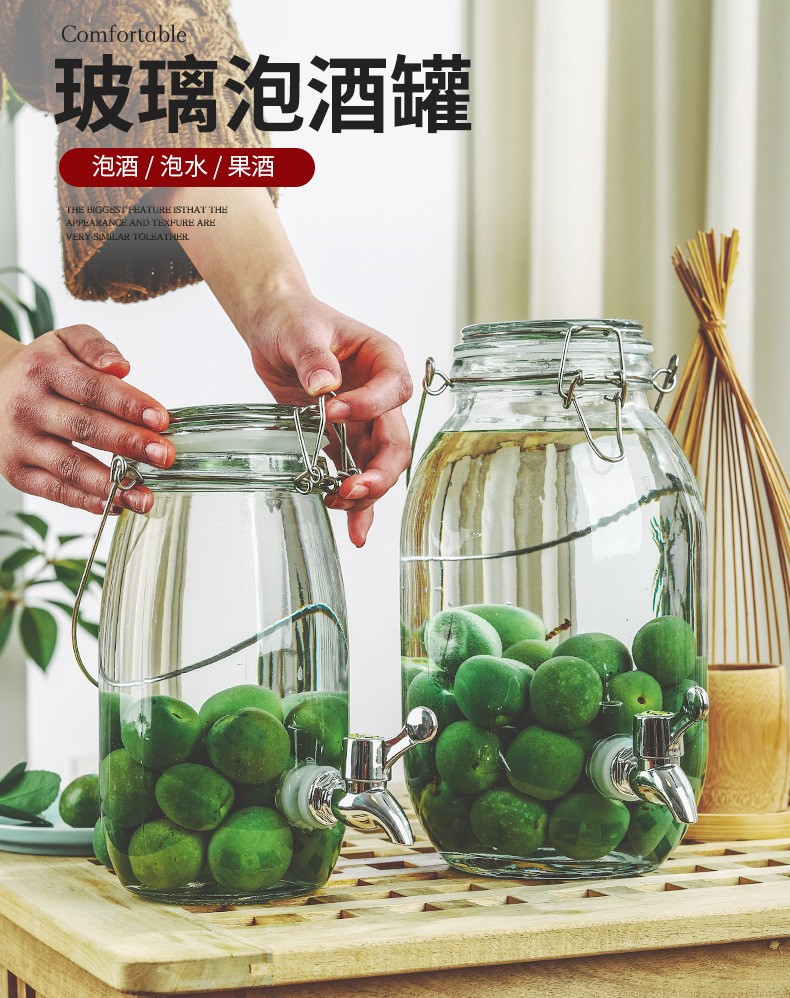 ガラス入れ酒缶入れ酒壇青梅楊梅入れ酒缶酒造密封缶ガラス留め瓶蛇口付き取っ手
