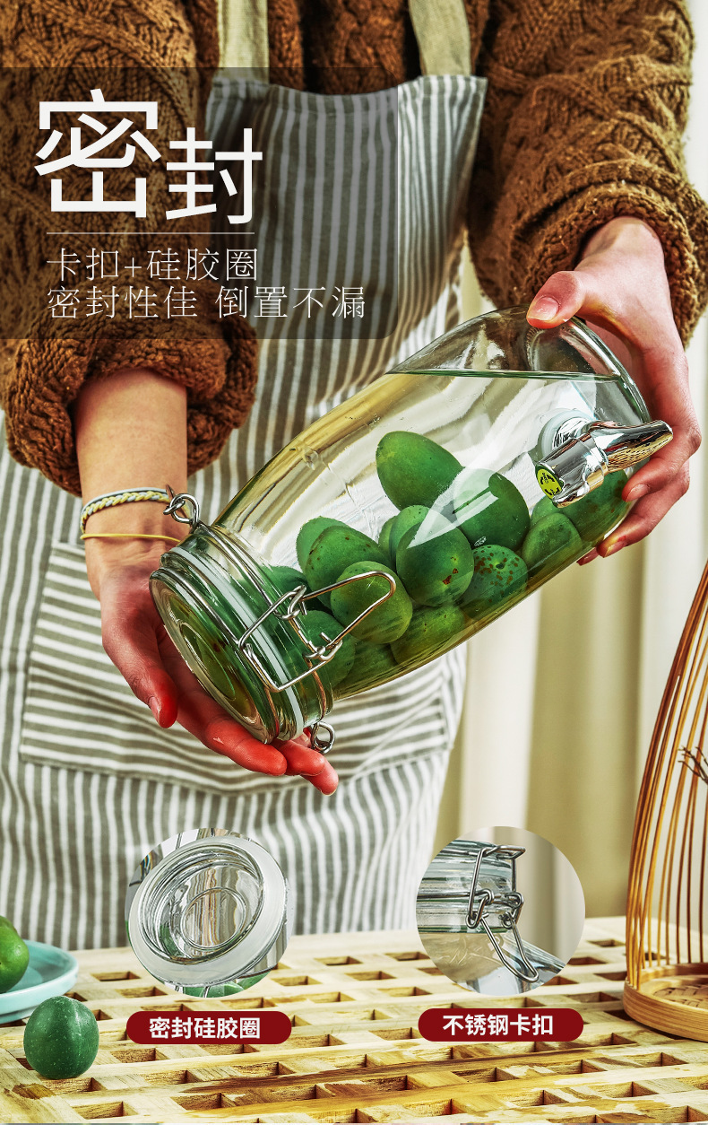 卸売ガラスバックル保存瓶密封ワインピクルス瓶ガラス保存瓶茶保存瓶蜂蜜