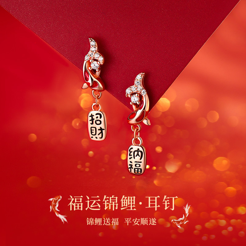 招财锦鲤招财纳福耳钉小众高级感本命年2026马过新年耳环女耳饰