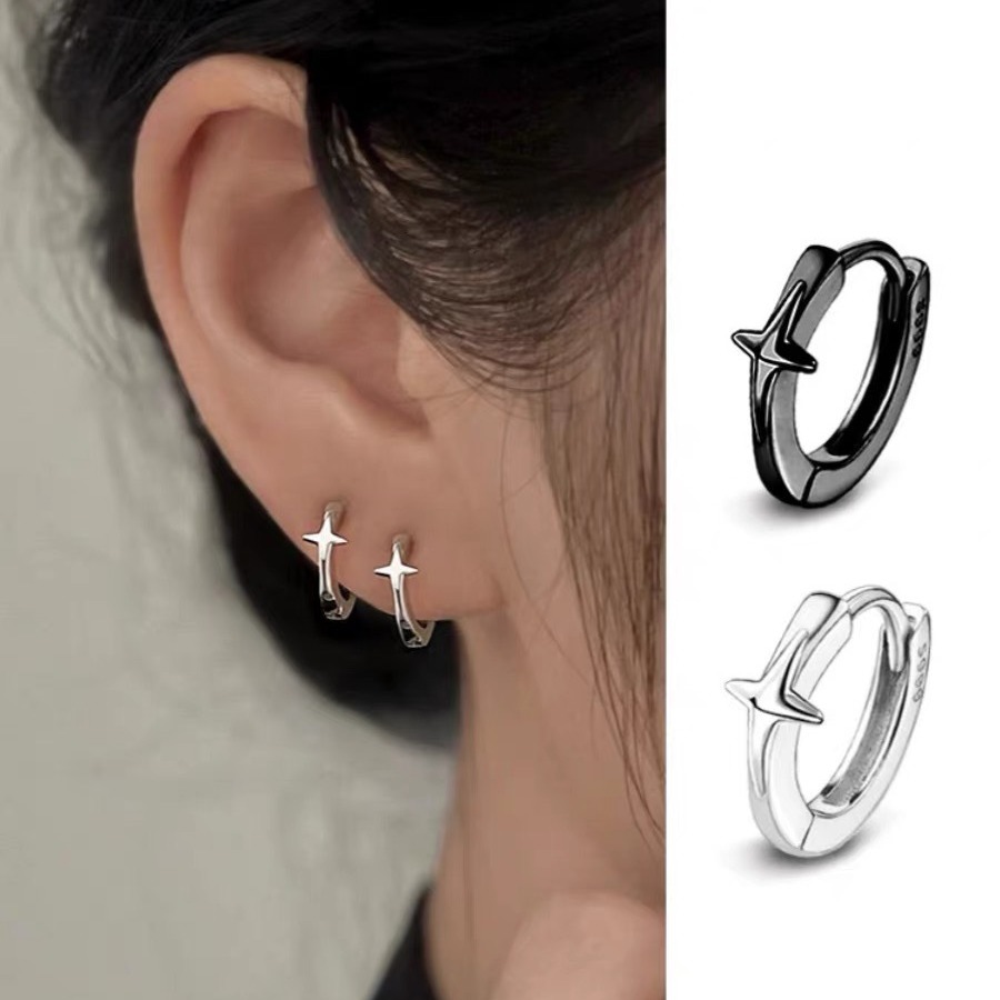 镀925银光面耳环耳圈耳骨钉养耳洞小众高级感素圈圆圈耳扣耳钉